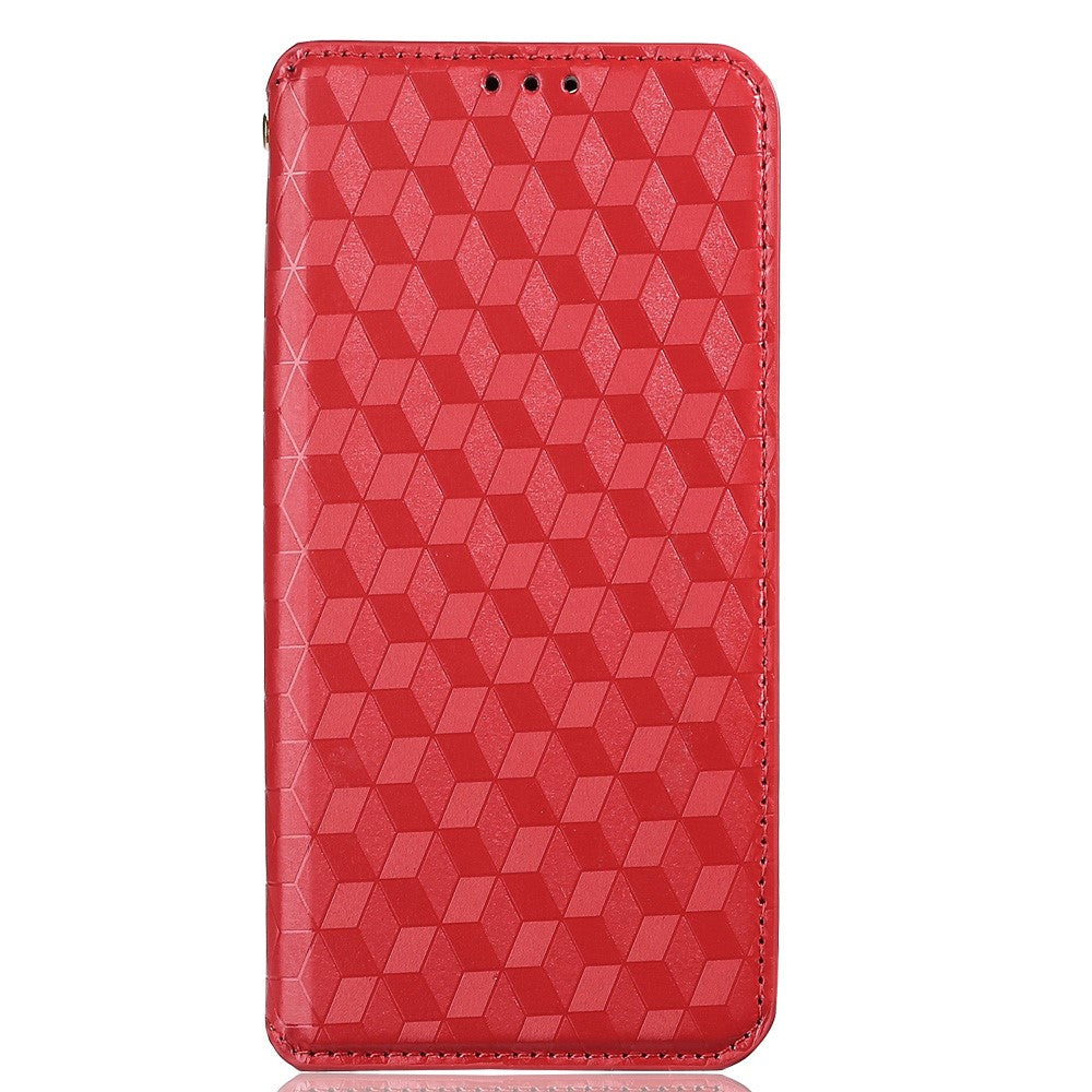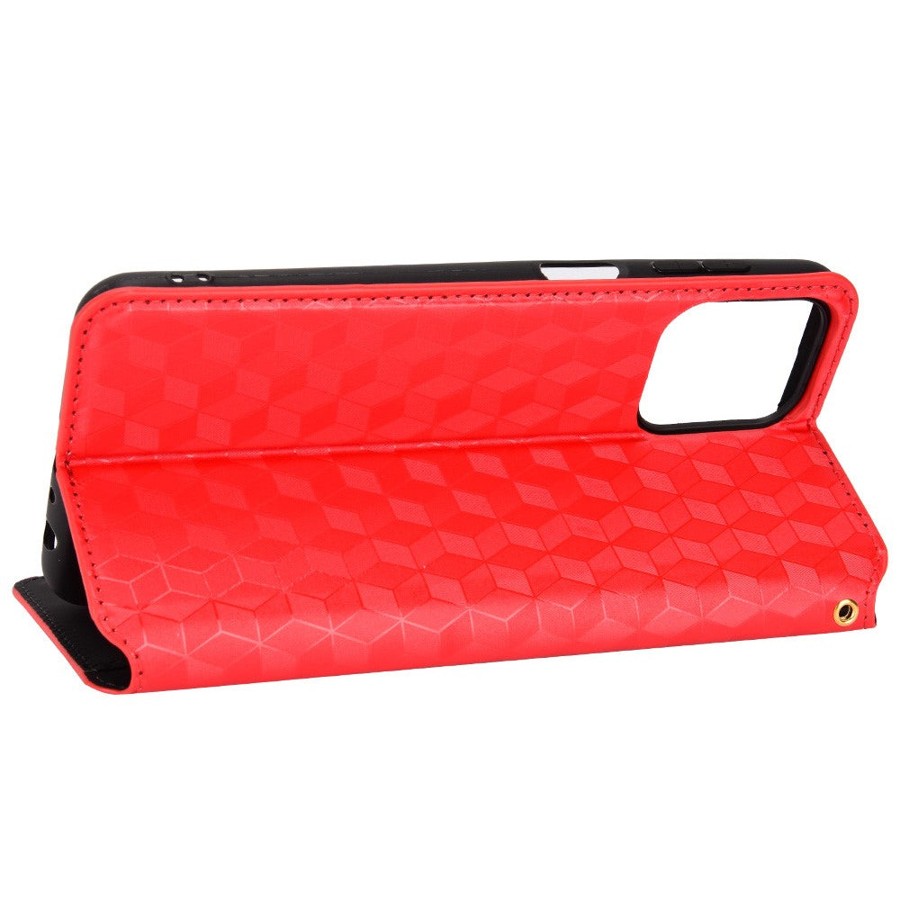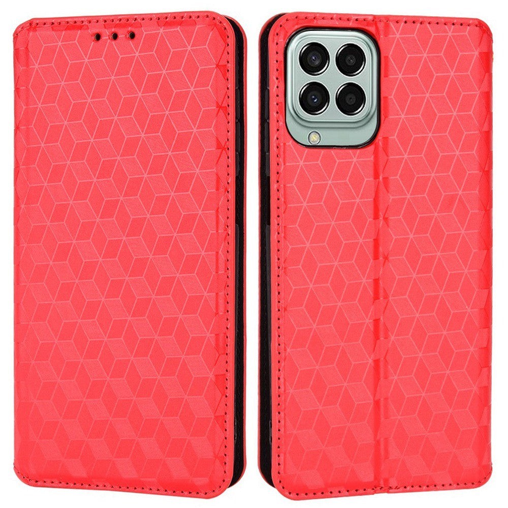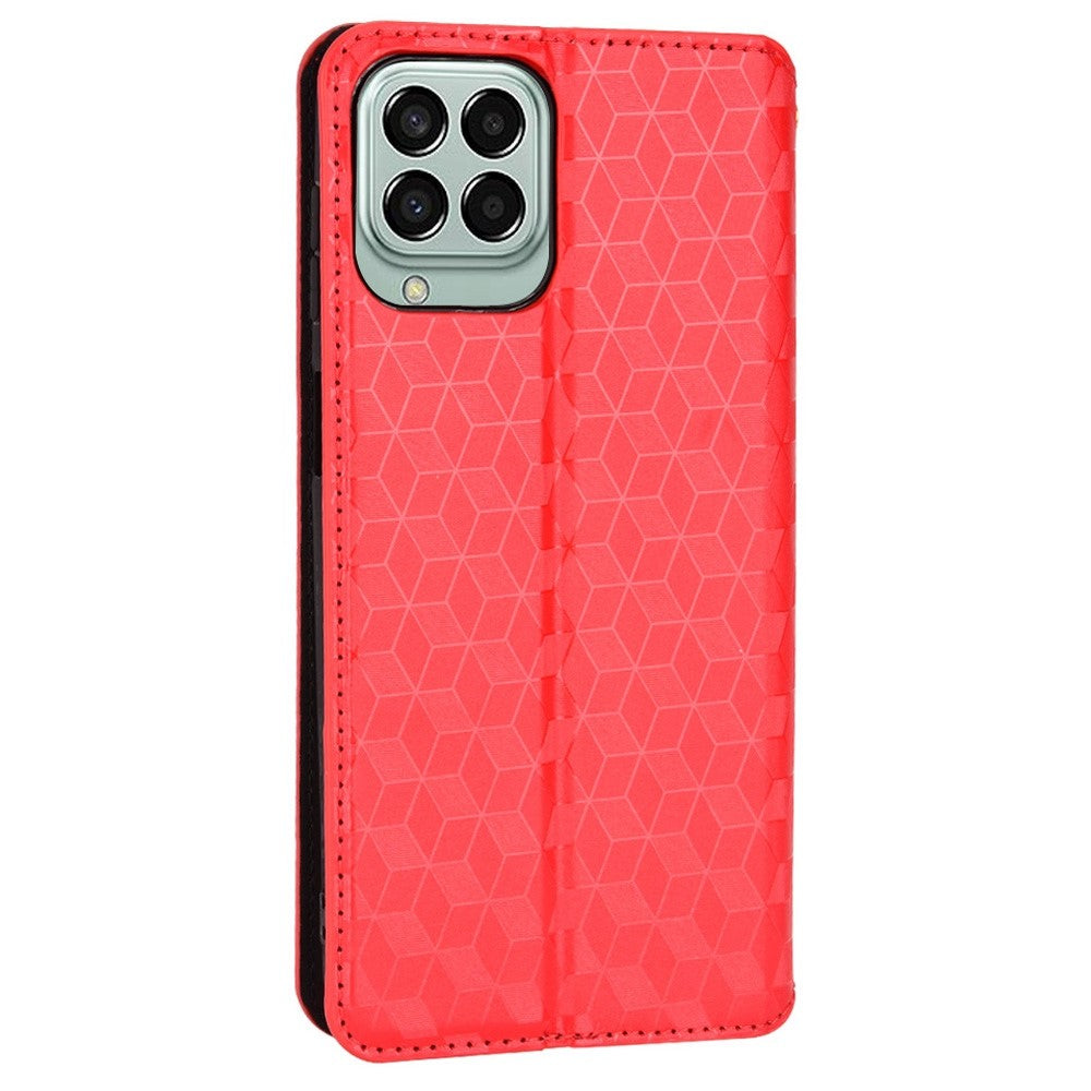 Anti-scratch Imprinted Rhombus Pattern Case for Samsung Galaxy M33 5G (Global Version), PU Leather Stand Magnetic Auto Closure Wallet Phone Cover - Red