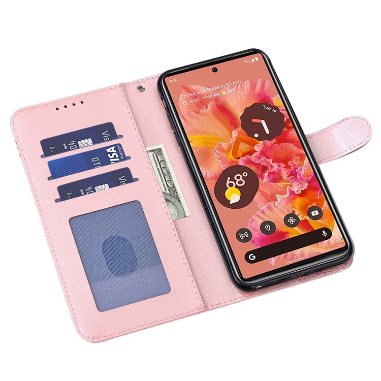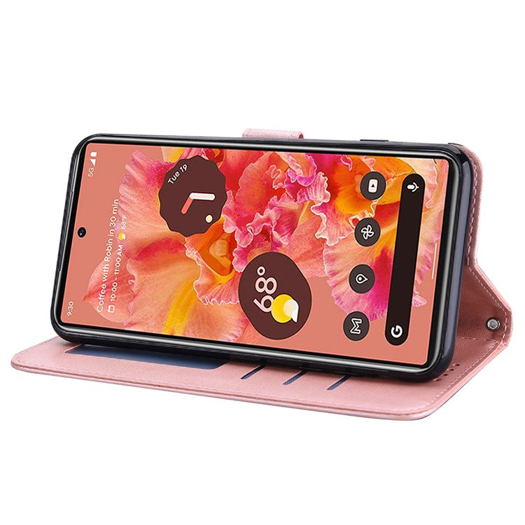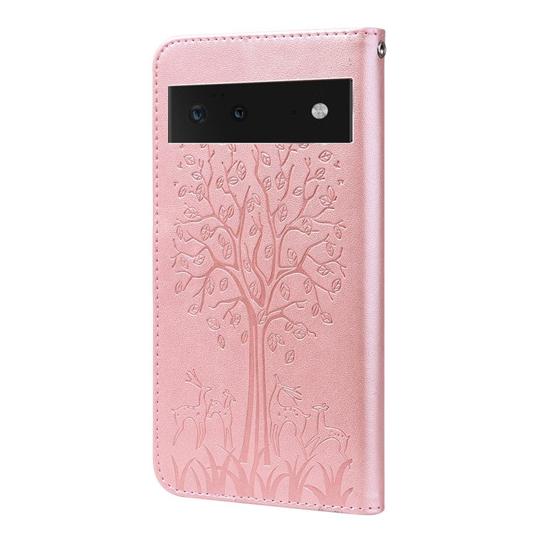 Anti-scratch Stand Phone Cover Imprinted Elk and Tree Pattern Wallet Leather Phone Case for Google Pixel 6 - Pink