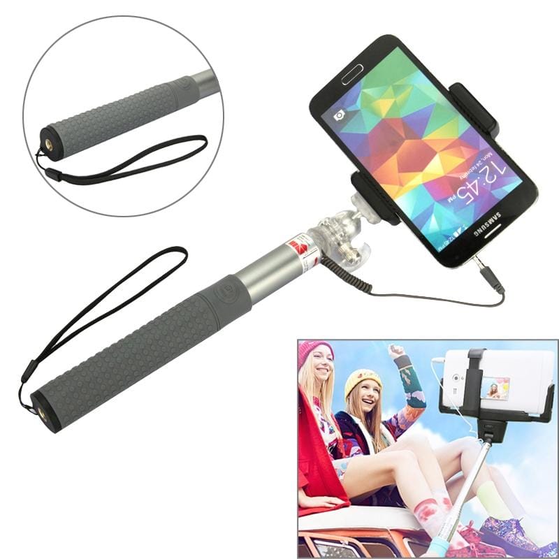 Anti-skid Aluminium Alloy 3.5mm Audio Cable Take Pole Self-timer Controller for iPhone 6 & 6S & 5 / Galaxy S3 / S4 / S5 / NOTE, Max Length: 85cm (Grey)