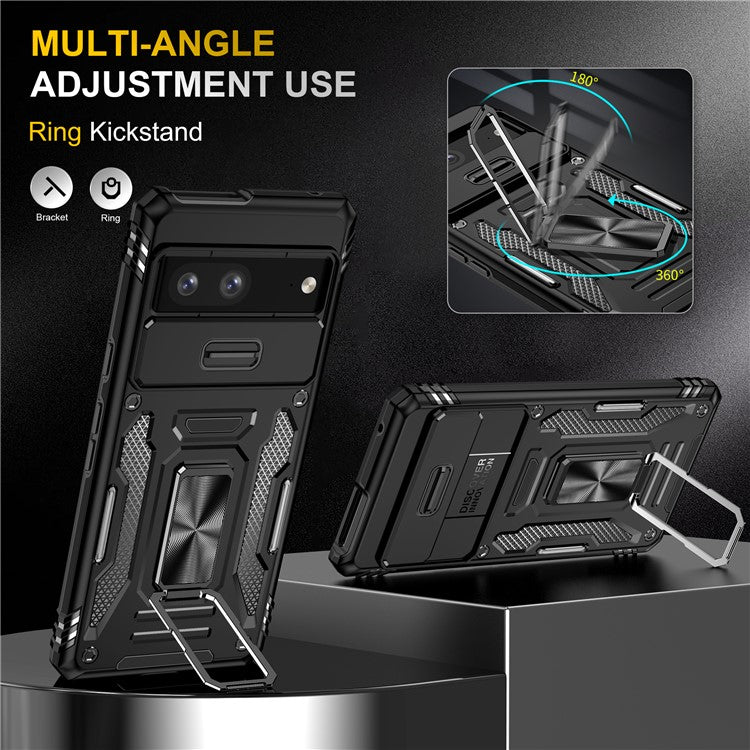 Armor Series For Google Pixel 9 Pro / Pixel 9 Case PC+TPU Kickstand Phone Cover with Slide Lens Shield - Black