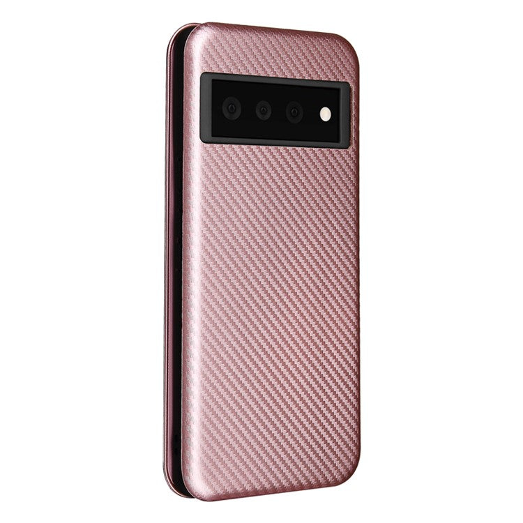 Auto-absorbed Leather Shell Carbon Fiber Texture with Card Slot and Ring Strap for Google Pixel 6 - Rose Gold