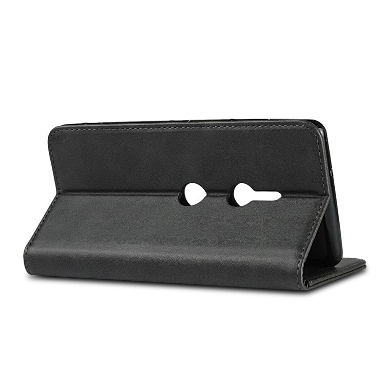 Auto-absorbed Leather Wallet Case with Stand for Sony Xperia XZ3 - Black