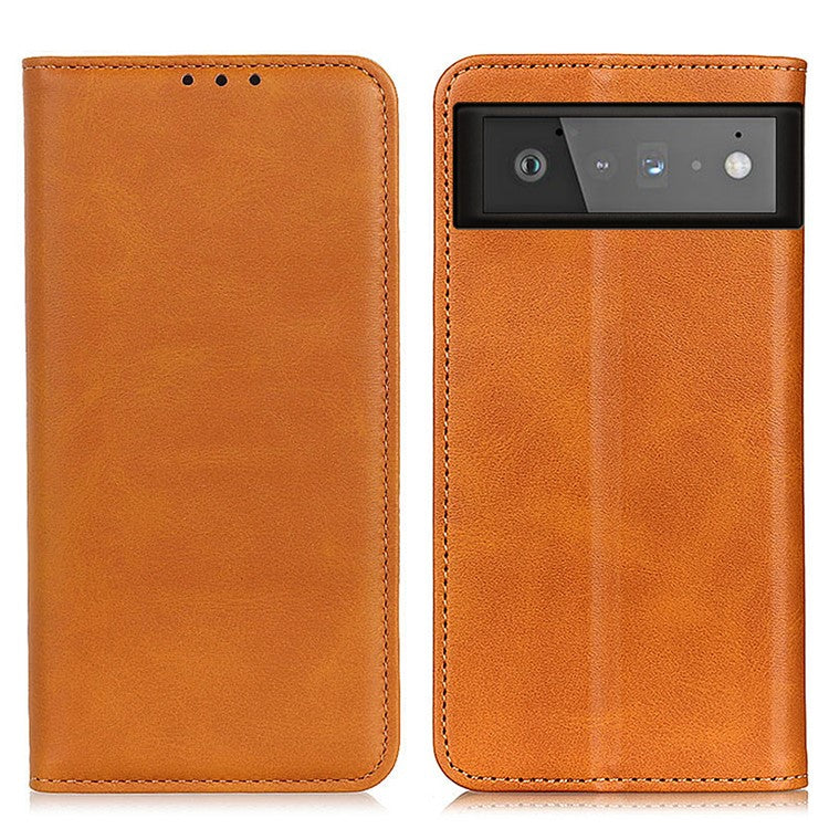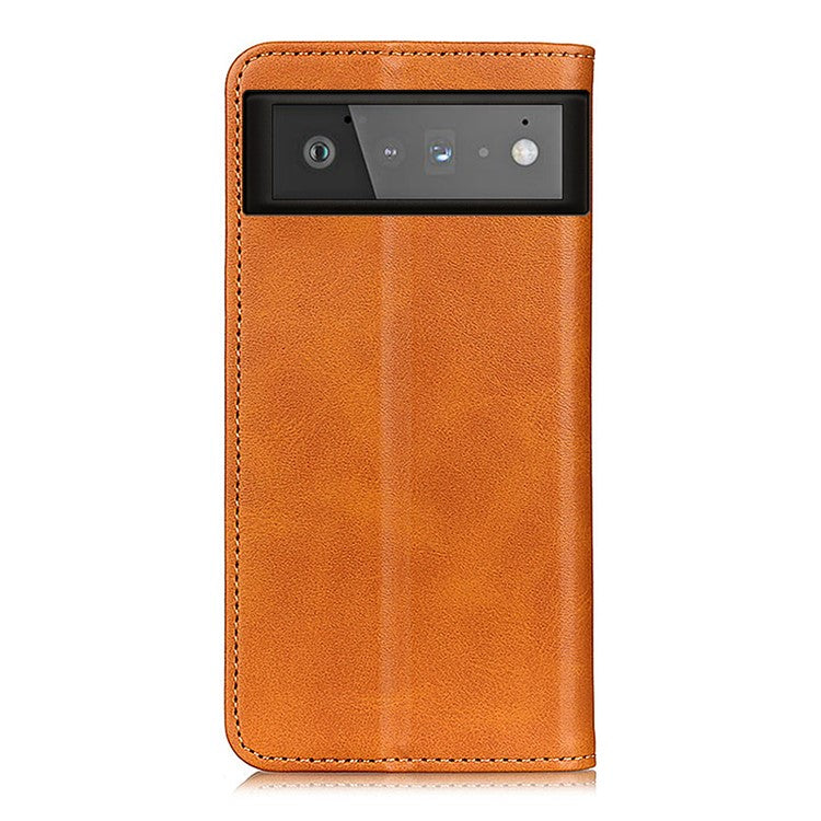 Auto-absorbed Split Leather Wallet Shell Case for Google Pixel 6 - Brown