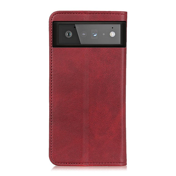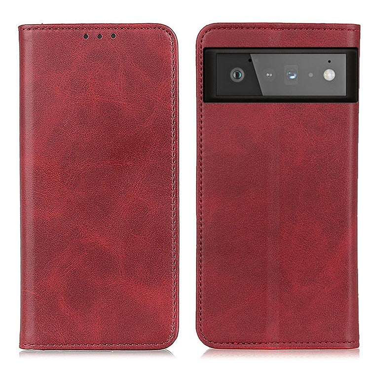 Auto-absorbed Split Leather Wallet Shell Case for Google Pixel 6 - Red