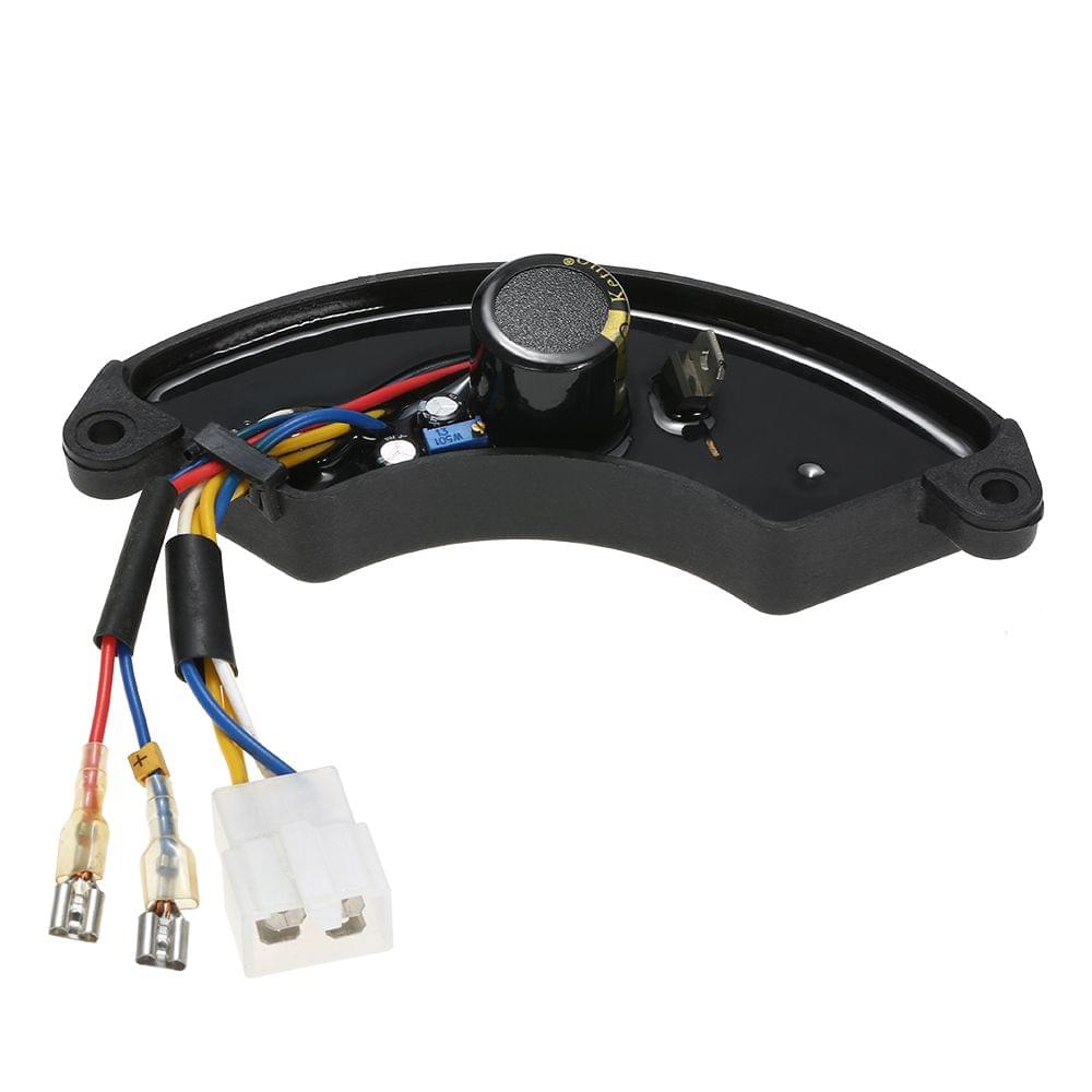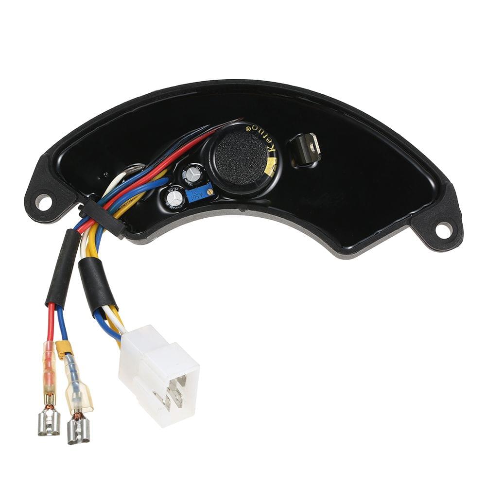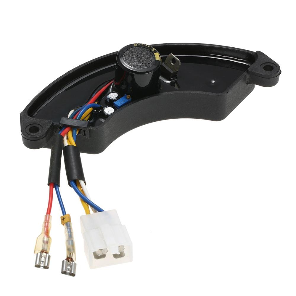 5KW-6.5KW AVR Automatic Voltage Regulator Rectifier For Gasoline Generator BlackFeatures:-Stop fluctuation of voltage automatically maintaining generator output terminal voltage at a set value.-Prevent generator from suffering damages of voltage fluctuation or over load.-It uses an electromechanical mechanism or passive or active electronic components.-According to the design which is used to manage one or more AC or DC voltage.-In addition to the shunt regulator the regulator operates through a number of fixed internal comparison of the actual output voltage of the reference voltage.-Any differences are used to control the zoom and regulatory elements.Specification:Color: BlackMaterial: Plastic shellPower: 5KW-6.5KWStarting mode: Electric startSize: As shown in picturePhase: single phaseType: half moonWire: 4 wires connector + 2 wiresCapacitor: 250v 470uFApplication:Fit for gasoline generatorPackage include1x voltage regulator