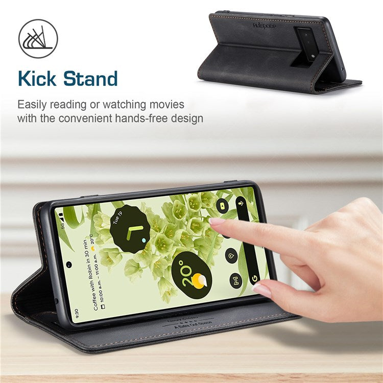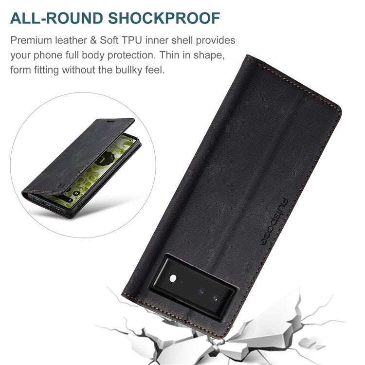 AUTSPACE A01 Series for Google Pixel 6 PU Leather Case RFID Blocking Wallet Stand Flip Cover - Black