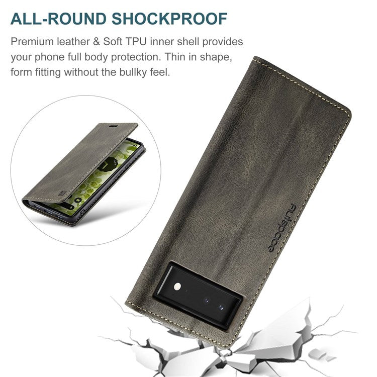 AUTSPACE A01 Series for Google Pixel 6 PU Leather Case RFID Blocking Wallet Stand Flip Cover - Coffee