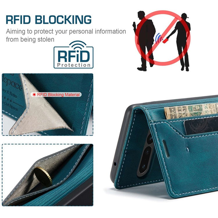 AUTSPACE A01 Series For Google Pixel 7 Pro 5G Retro Matte PU Leather Phone Case RFID Blocking Cover with Foldable Stand Wallet - Blue