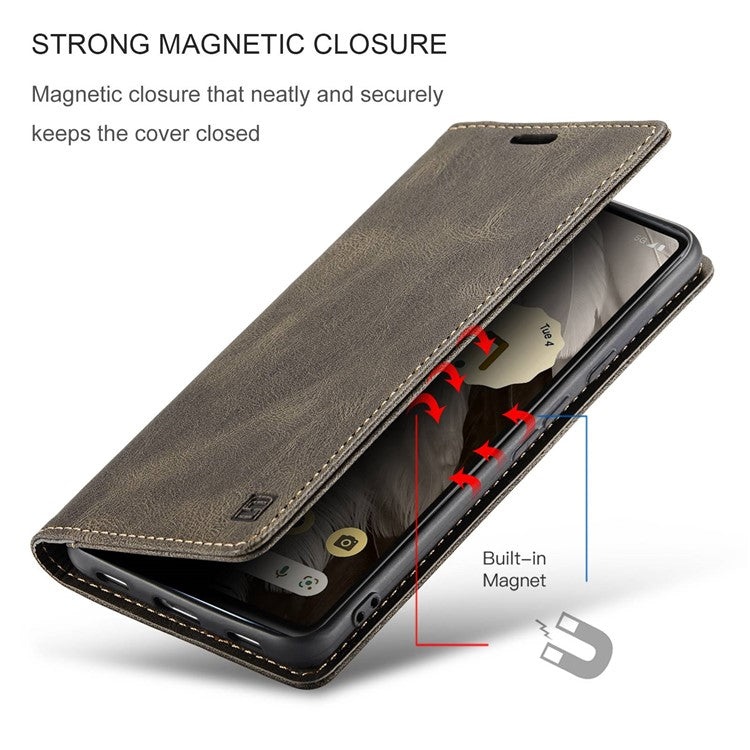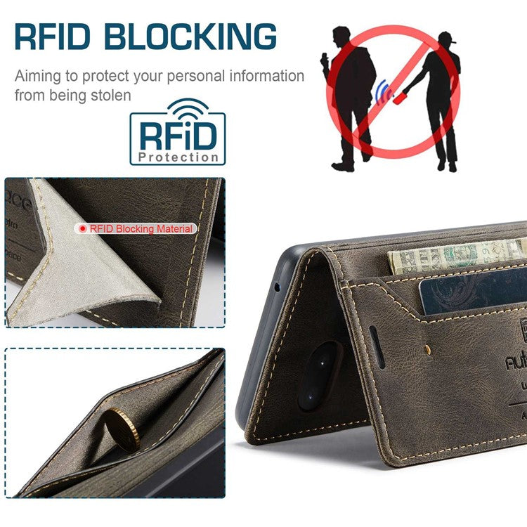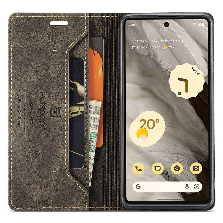 AUTSPACE A01 Series RFID Blocking Phone Case for Google Pixel 7 5G, PU Leather Drop Protection Magnetic Closure Vintage Matte Wallet Stand Cover - Coffee