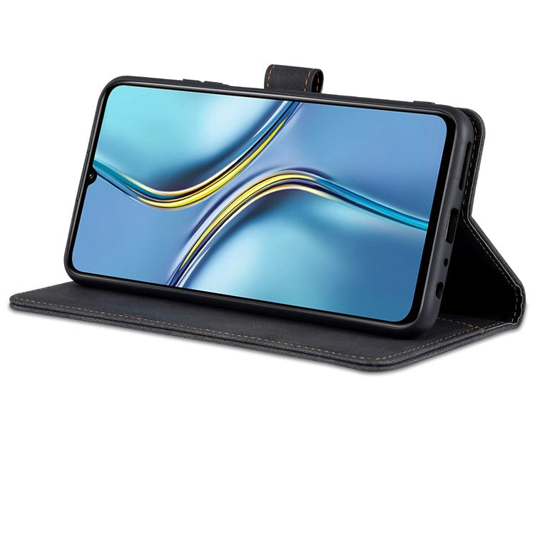 AZNS All-round Protection PU Leather Wallet Stand Shockproof Phone Case Cover for Honor X30 Max - Black