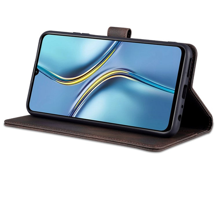 AZNS All-round Protection PU Leather Wallet Stand Shockproof Phone Case Cover for Honor X30 Max - Brown