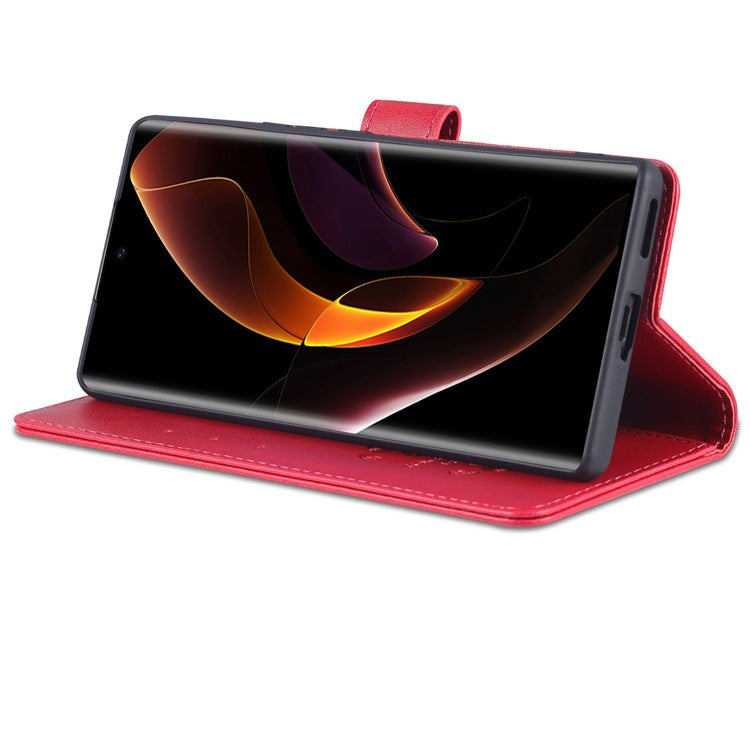 AZNS Anti-scratch Anti-fingerprint Textured TPU + PU Leather Stand Wallet Case Magnetic Phone Cover for Honor 60 Pro - Red