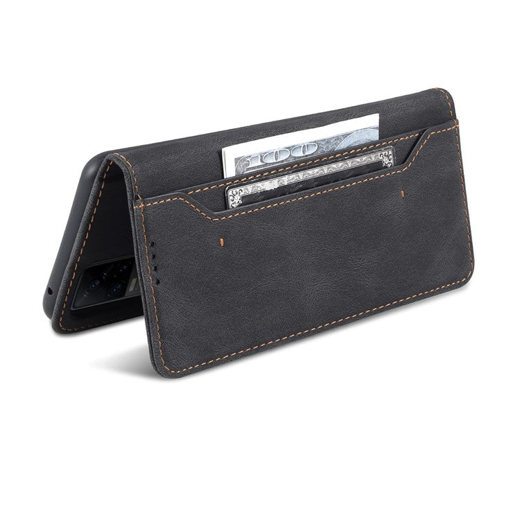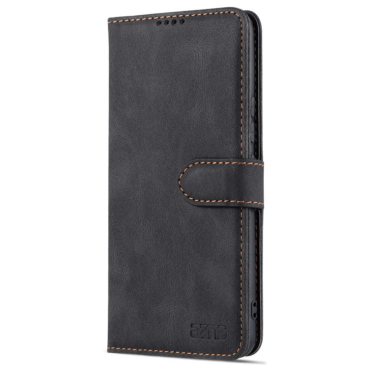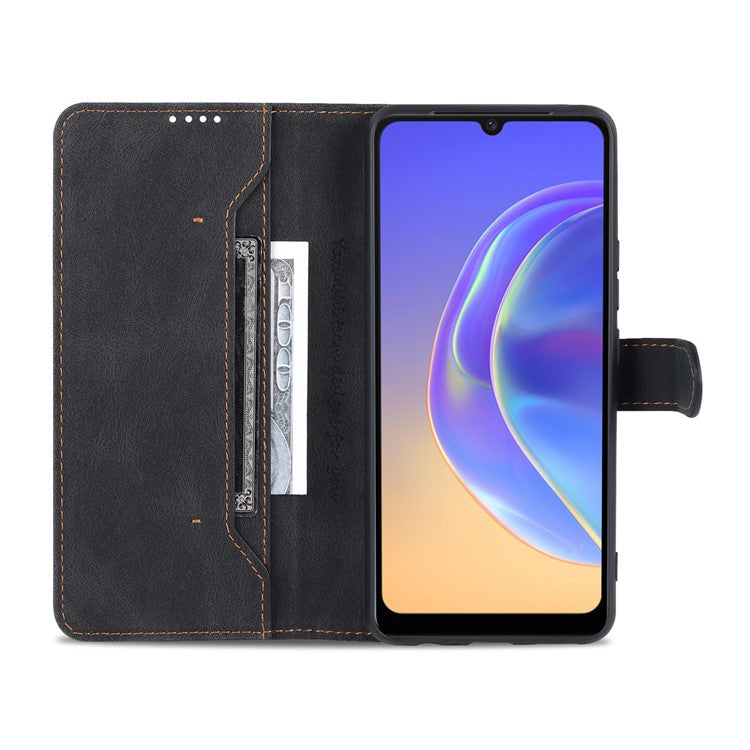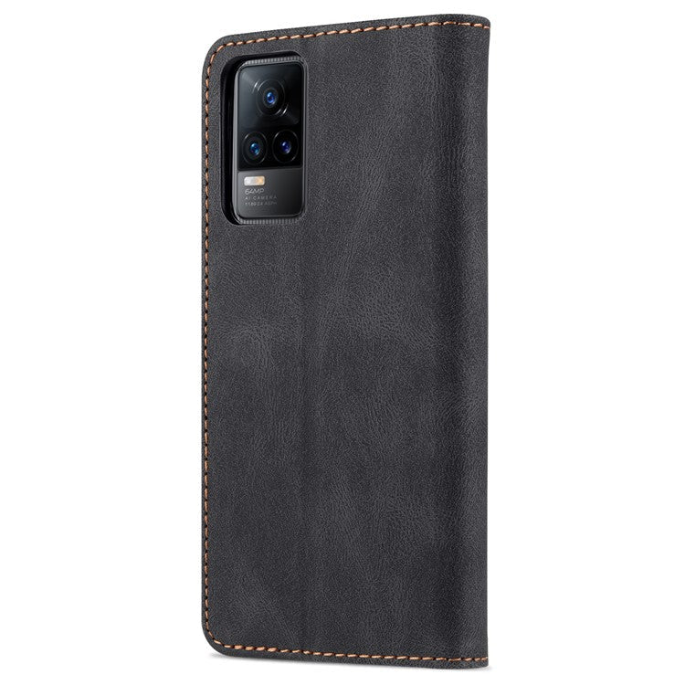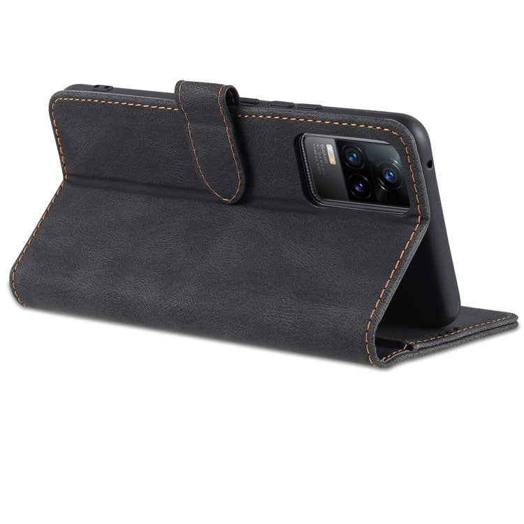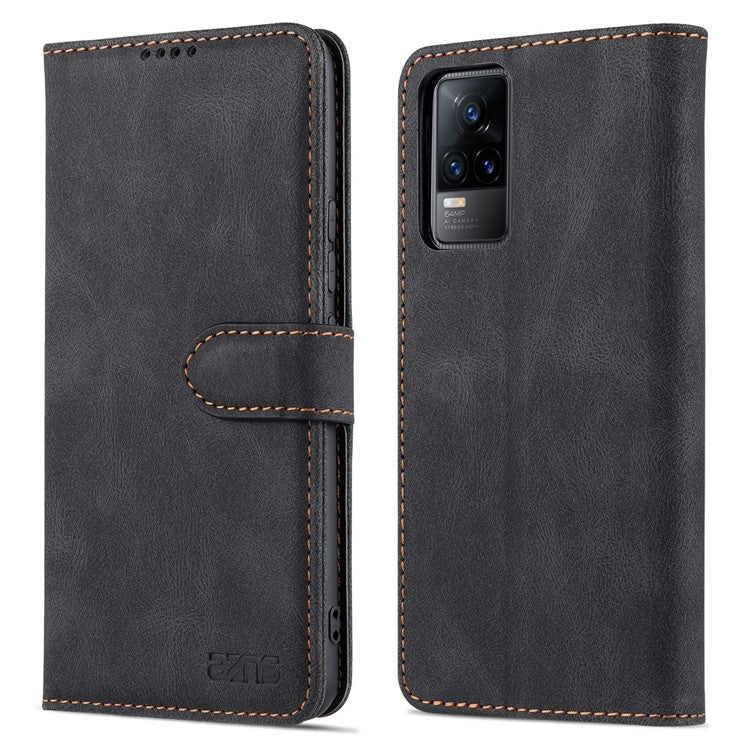 AZNS Anti-Scratch Wallet Design Phone Case Shockproof Flip Phone Cover with Stand for vivo V21e 4G / vivo Y73 - Black