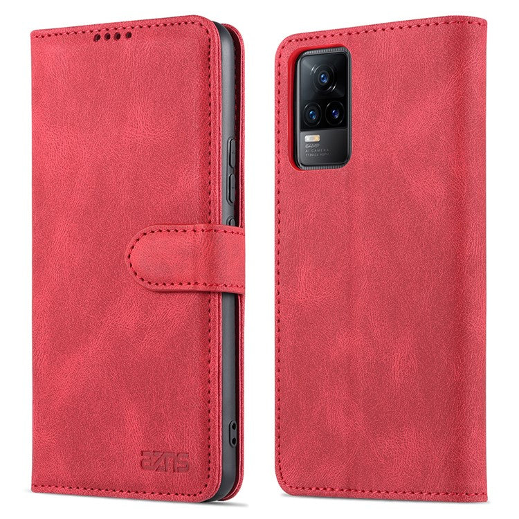 AZNS Anti-Scratch Wallet Design Phone Case Shockproof Flip Phone Cover with Stand for vivo V21e 4G / vivo Y73 - Red