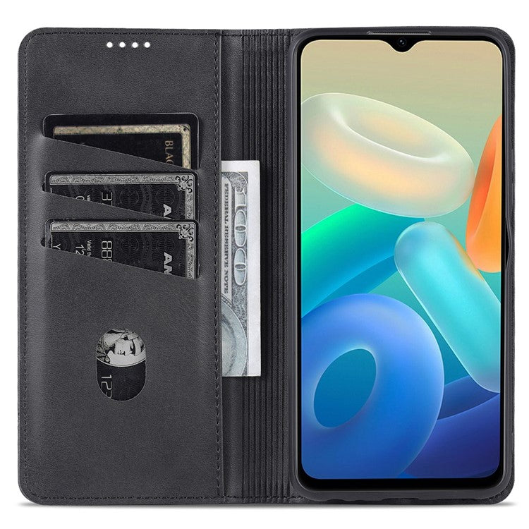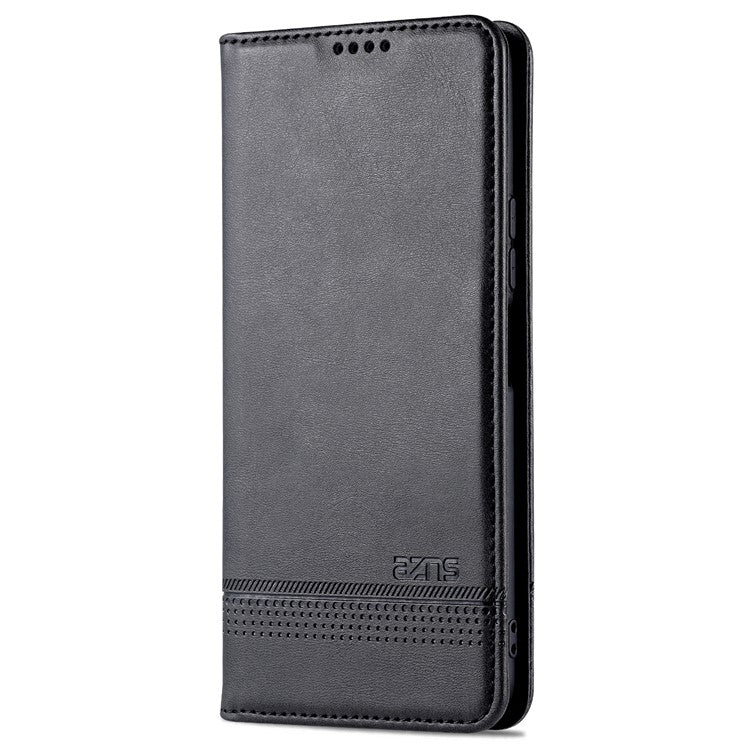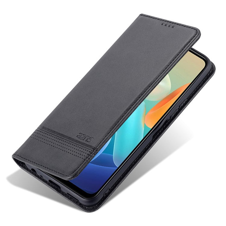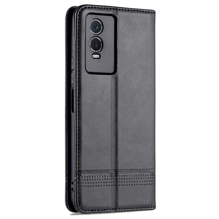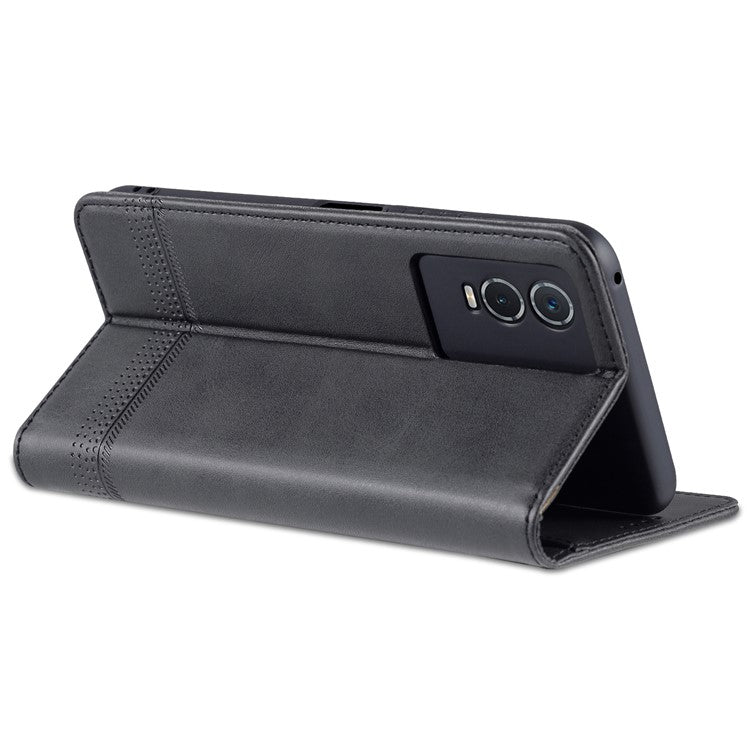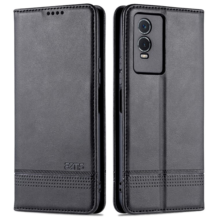 AZNS Auto-absorbed Magnetic Leather Phone for vivo Y74s/Y76s, Folio Flip Wallet Stand Protective Shell - Black