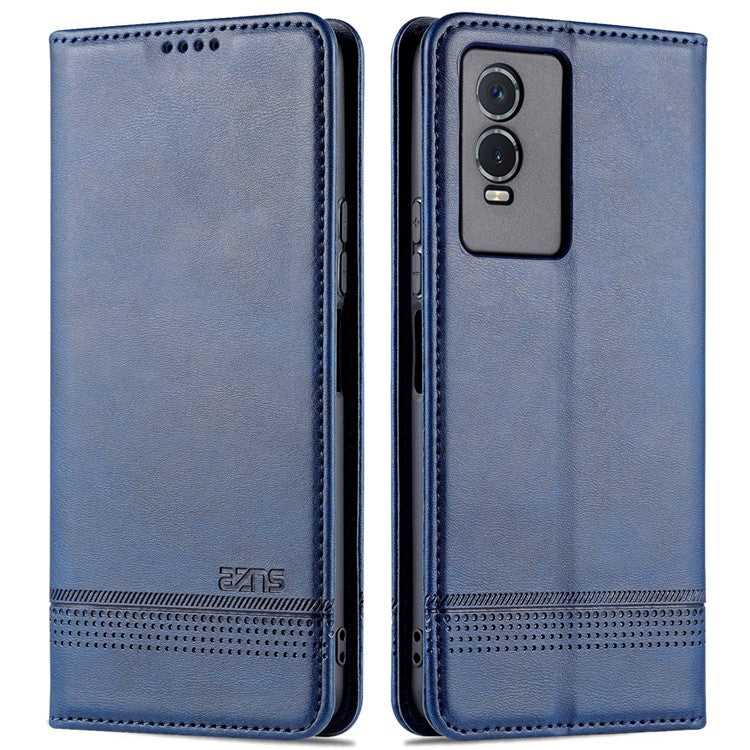 AZNS Auto-absorbed Magnetic Leather Phone for vivo Y74s/Y76s, Folio Flip Wallet Stand Protective Shell - Dark Blue