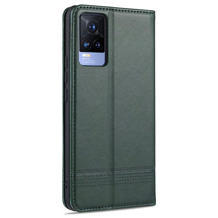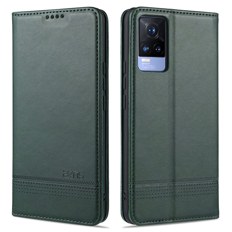 AZNS Auto-absorbed Magnetic Leather Wallet Case Phone Stand Shell for vivo V21e 4G/Y73 (2021) - Green