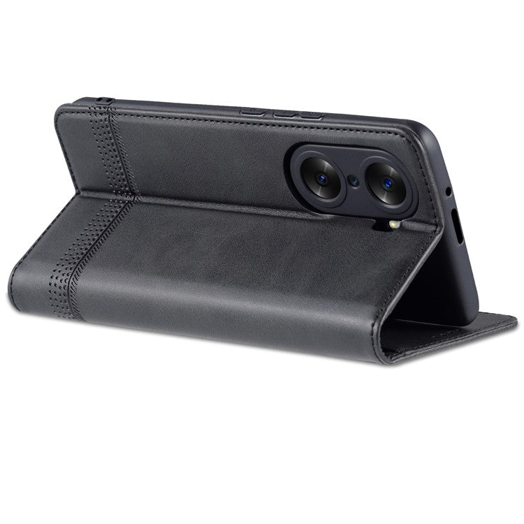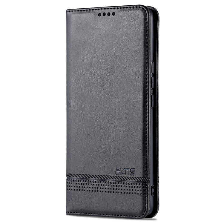 AZNS Fall Prevention PU Leather Wallet Flip Case Magnetic Absorption Folding Stand Protective Cover for Honor 60 - Black