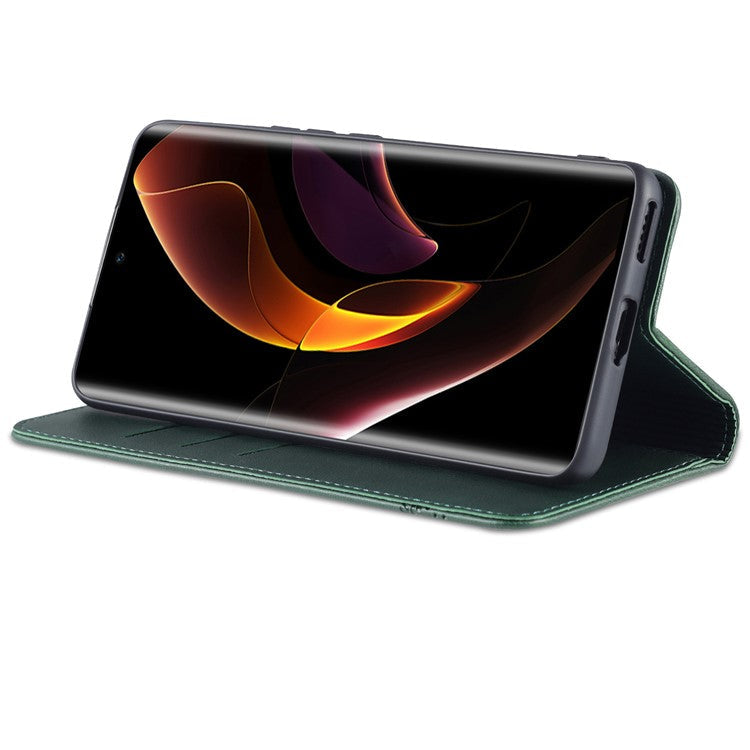 AZNS Fall Prevention PU Leather Wallet Flip Case Magnetic Absorption Folding Stand Protective Cover for Honor 60 - Green
