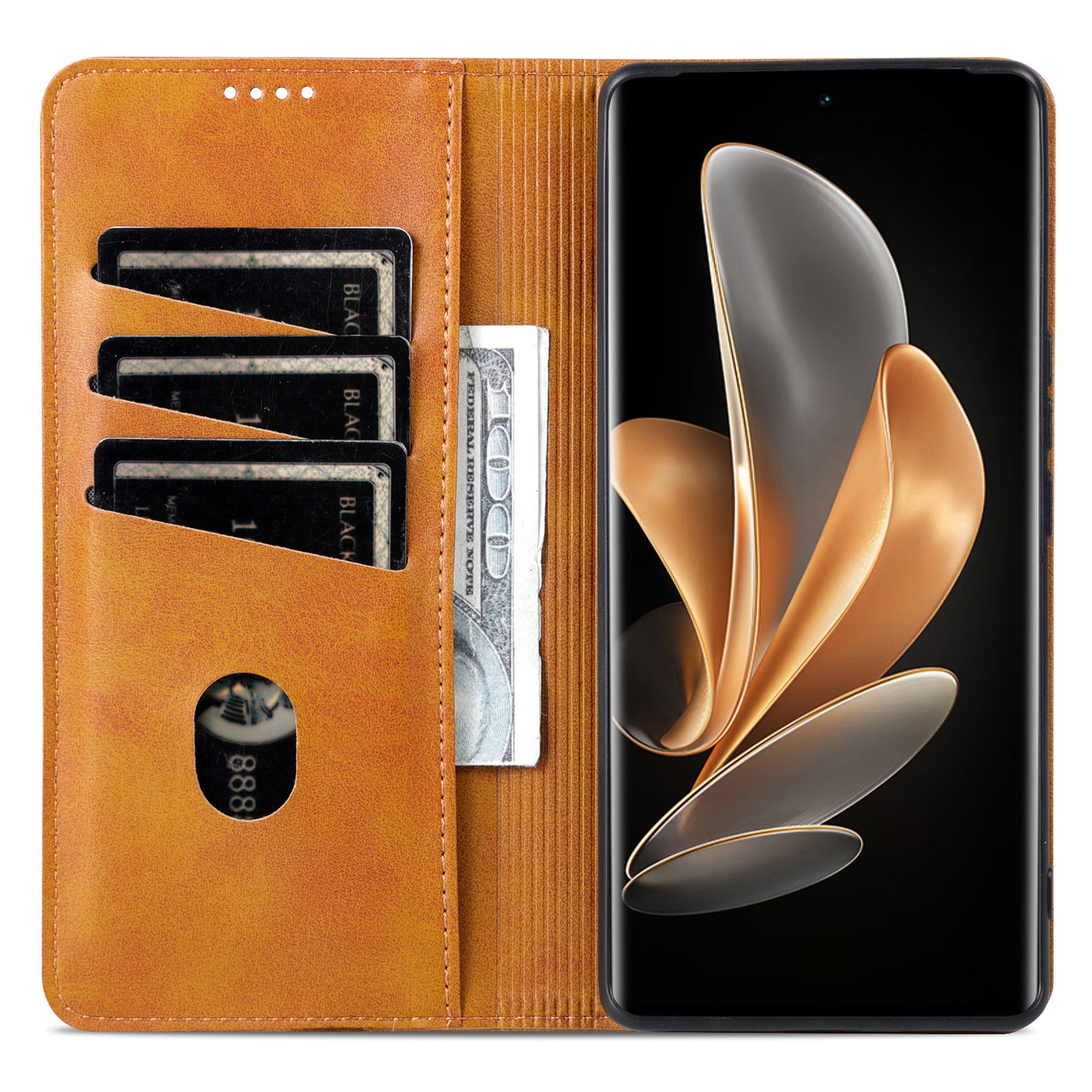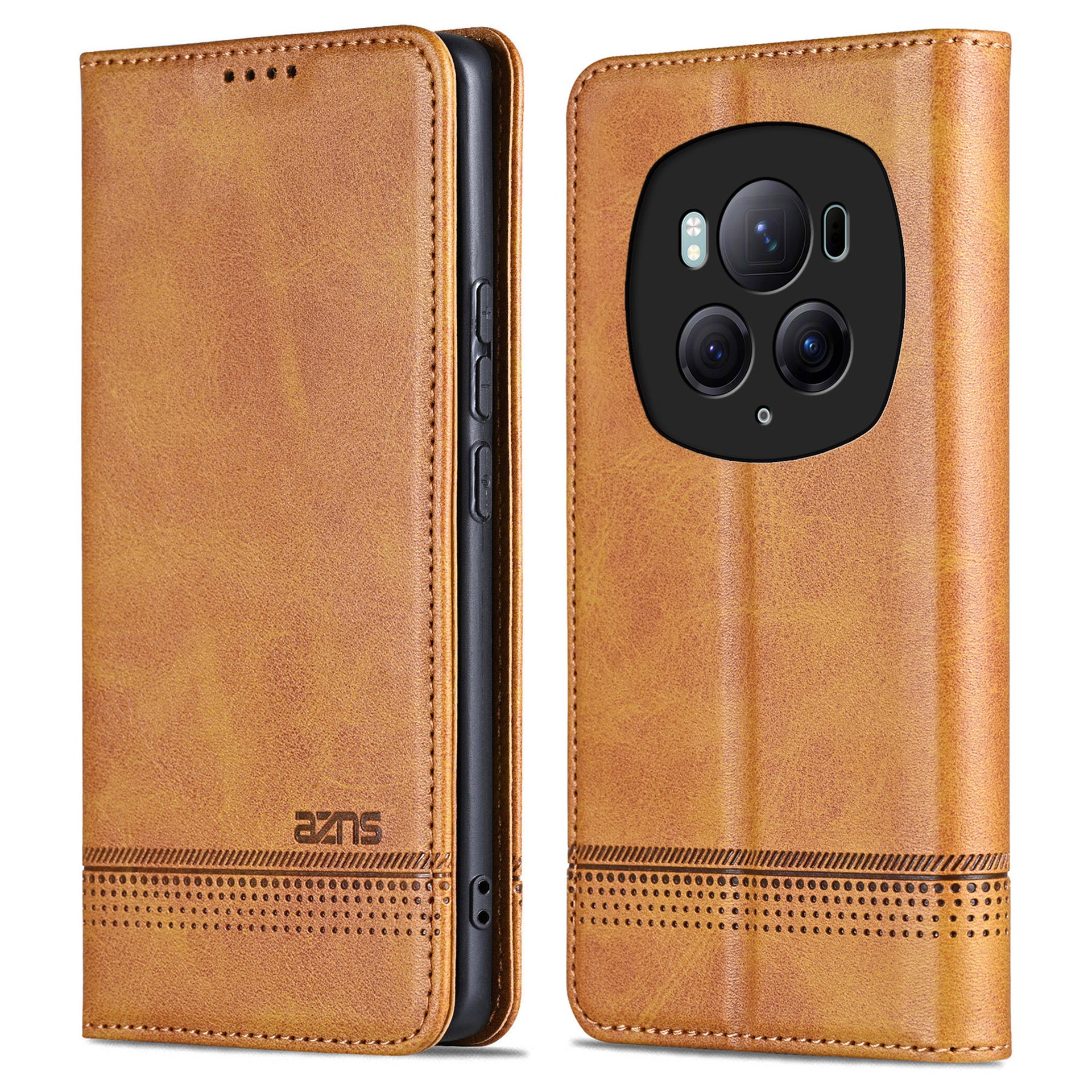 AZNS For Honor Magic6 Pro 5G Magnetic Case Cowhide Texture Leather Phone Stand Cover - Brown