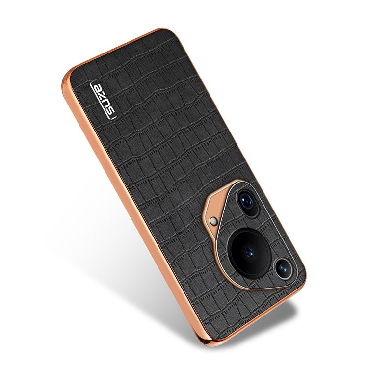 AZNS For Huawei Pura 70 Ultra Case Leather Electroplating Phone Cover Crocodile Pattern Textured - Black