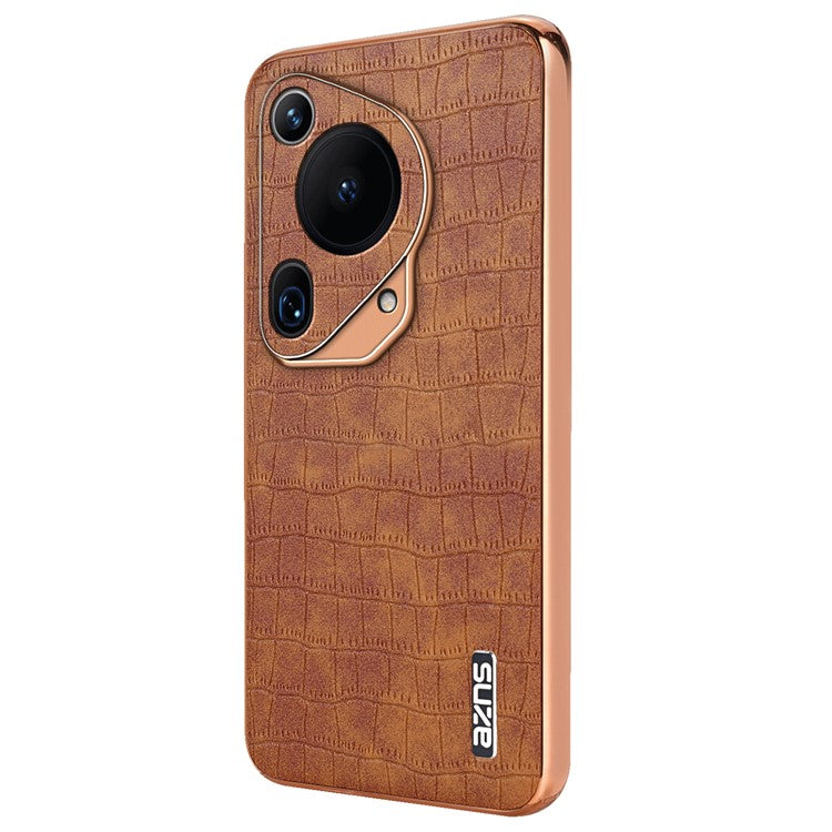 AZNS For Huawei Pura 70 Ultra Case Leather Electroplating Phone Cover Crocodile Pattern Textured - Brown