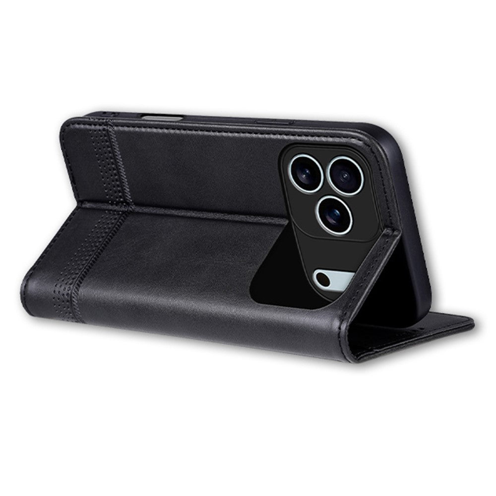AZNS For iPhone 17 Pro Max Case Cowhide Texture PU Leather Wallet Phone Cover - Black