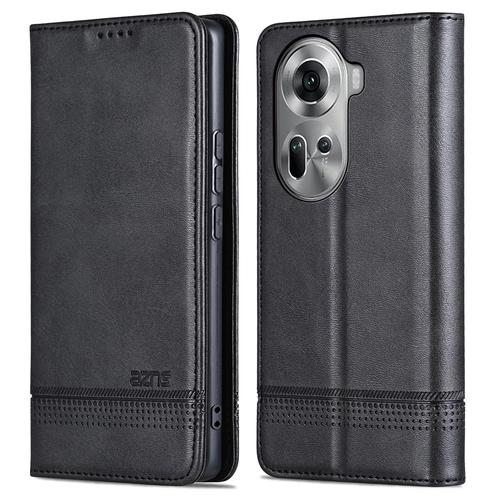 AZNS For Oppo Reno11 5G (Global) Case PU Leather Flip Stand Wallet Phone Cover - Black