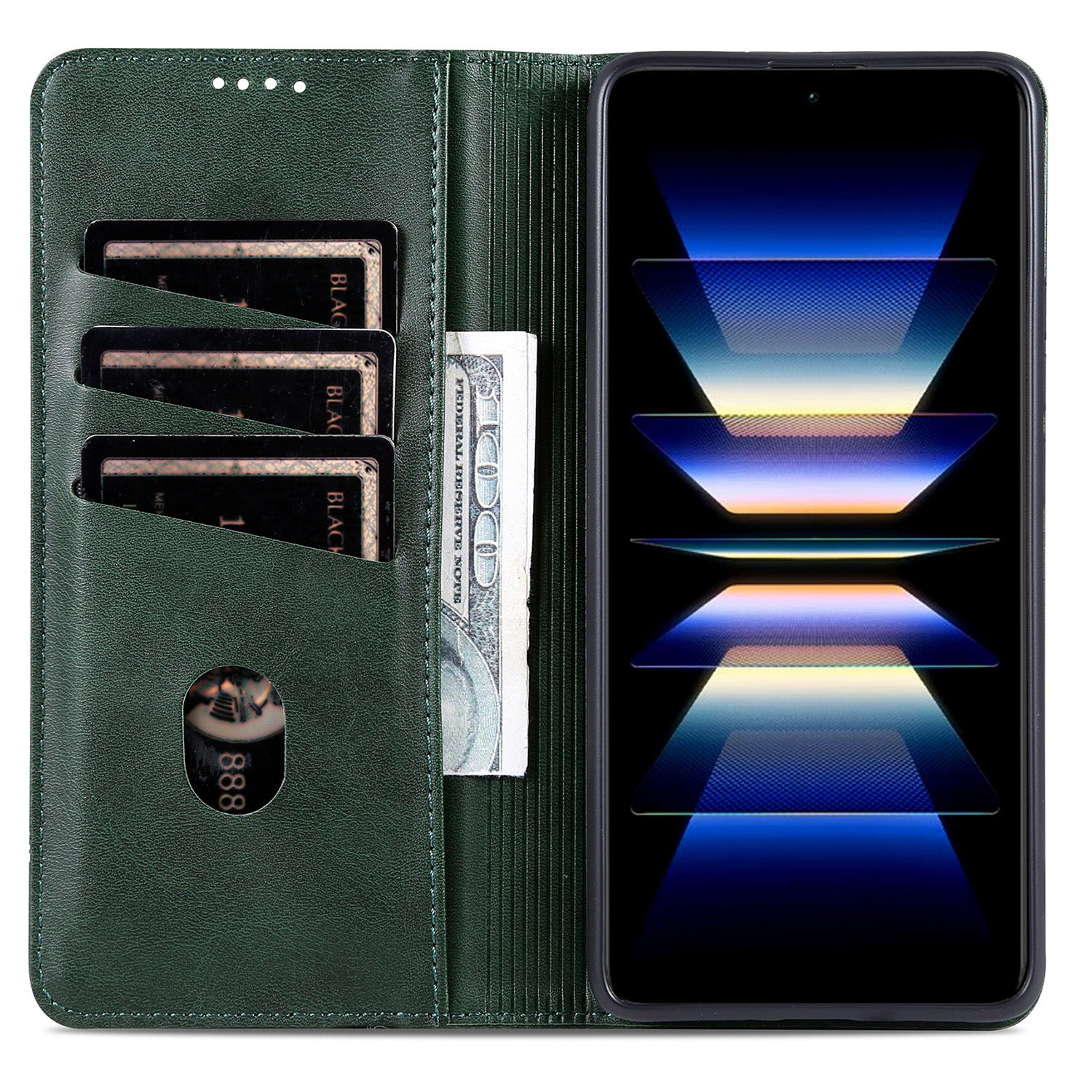 High-class PU leather with a TPU inner case provides good and all-inclusive protection for the phone. Built-in card slots and one cash pocket inside keep your main cards and cash money on the same side and easy to use. Imprinting logo, dots and lines add some details to the plain phone case.