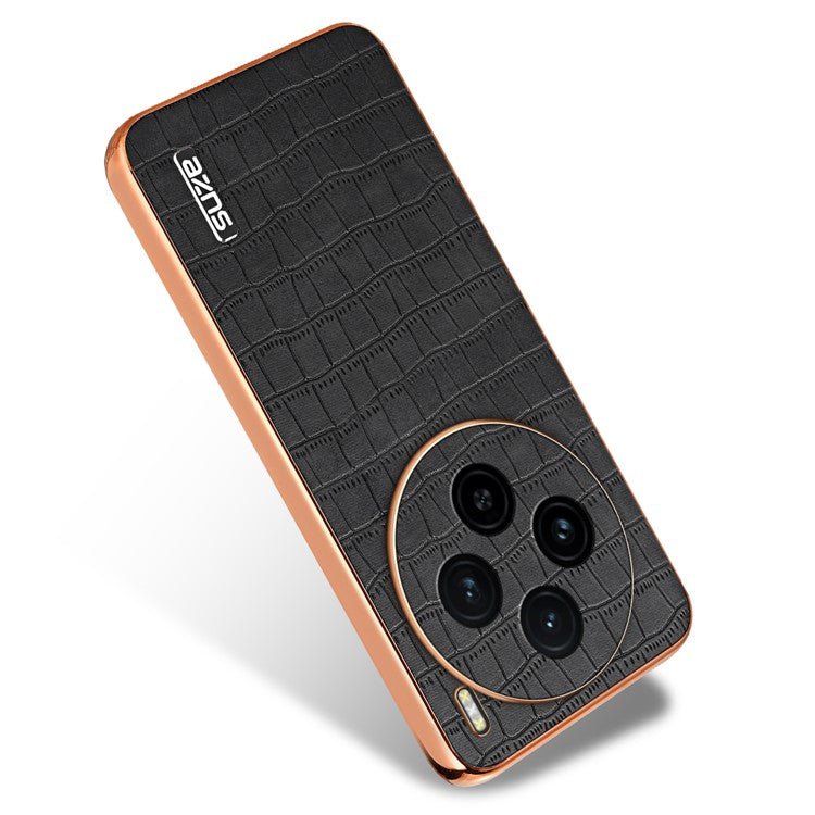 AZNS For vivo X100 5G Case Leather+TPU Electroplating Phone Cover Crocodile Texture - Black