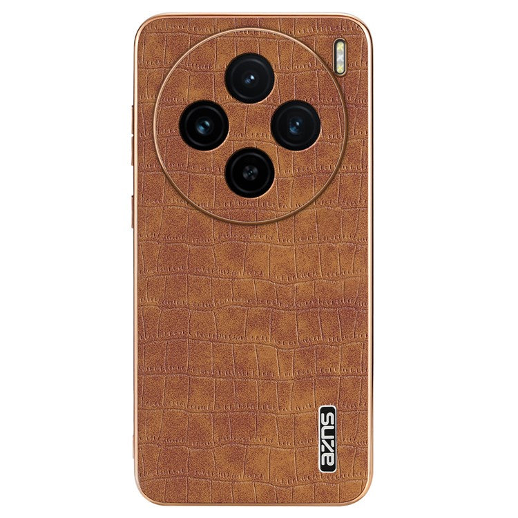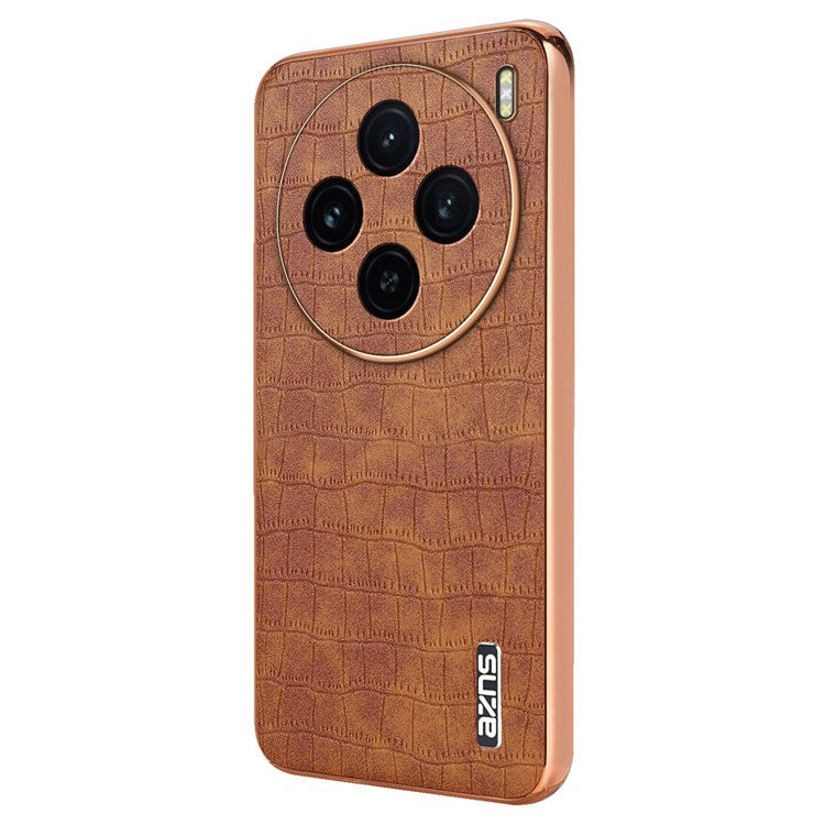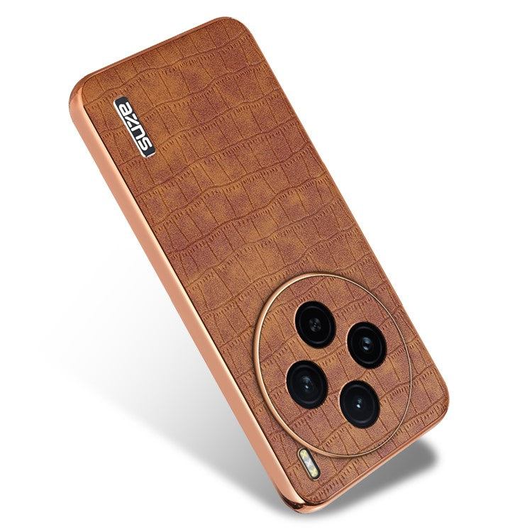 AZNS For vivo X100 5G Case Leather+TPU Electroplating Phone Cover Crocodile Texture - Brown