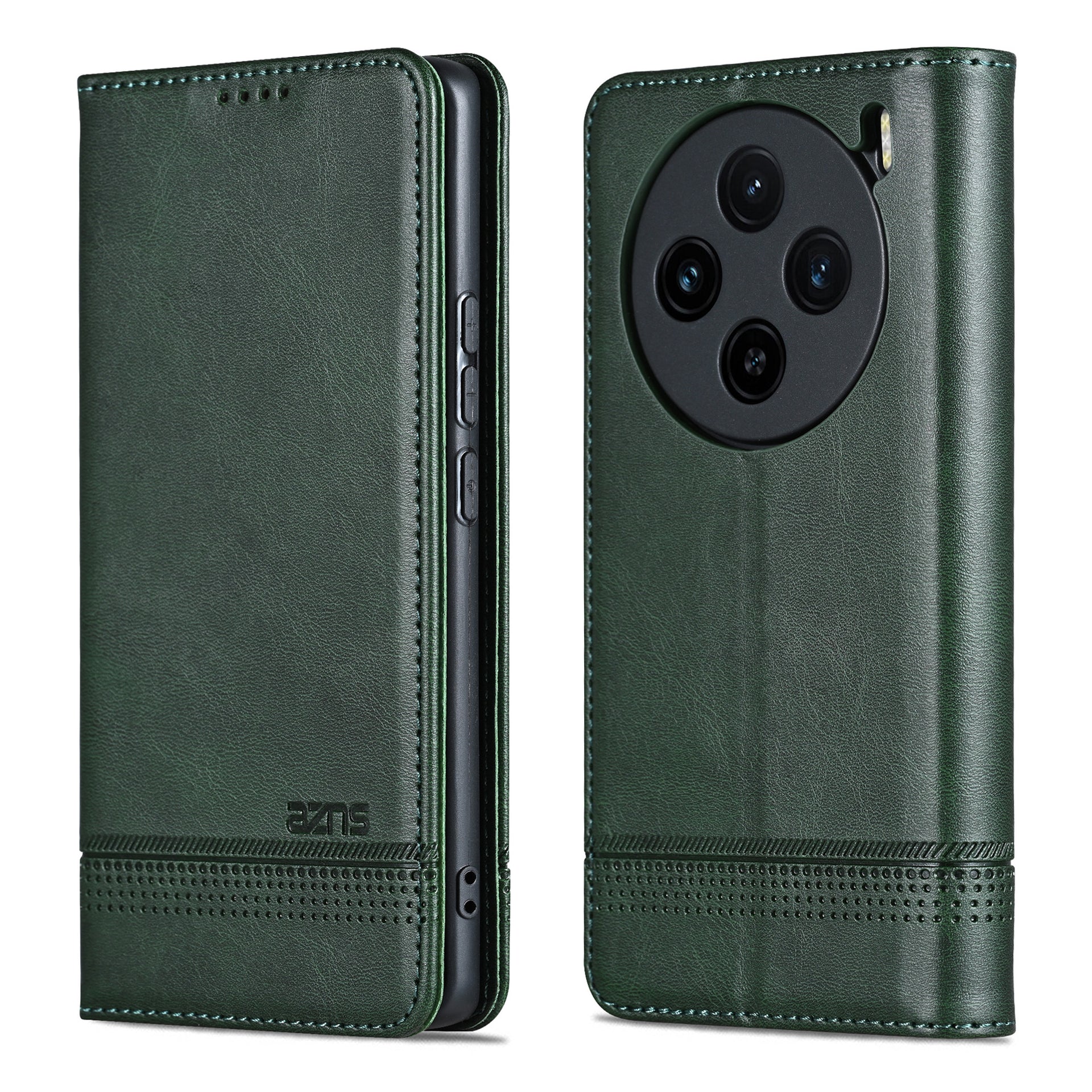 AZNS For vivo X100 5G Phone Case Flip Stand PU Leather Protective Cover - Green