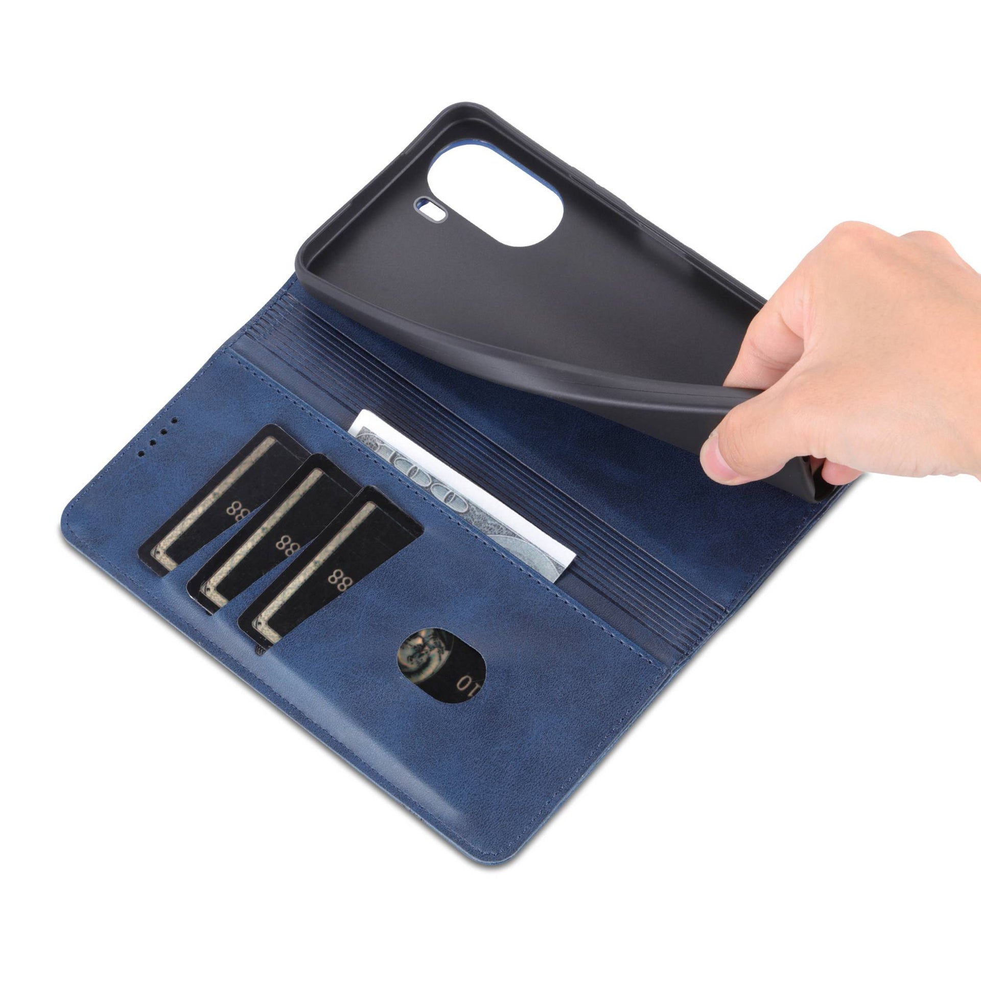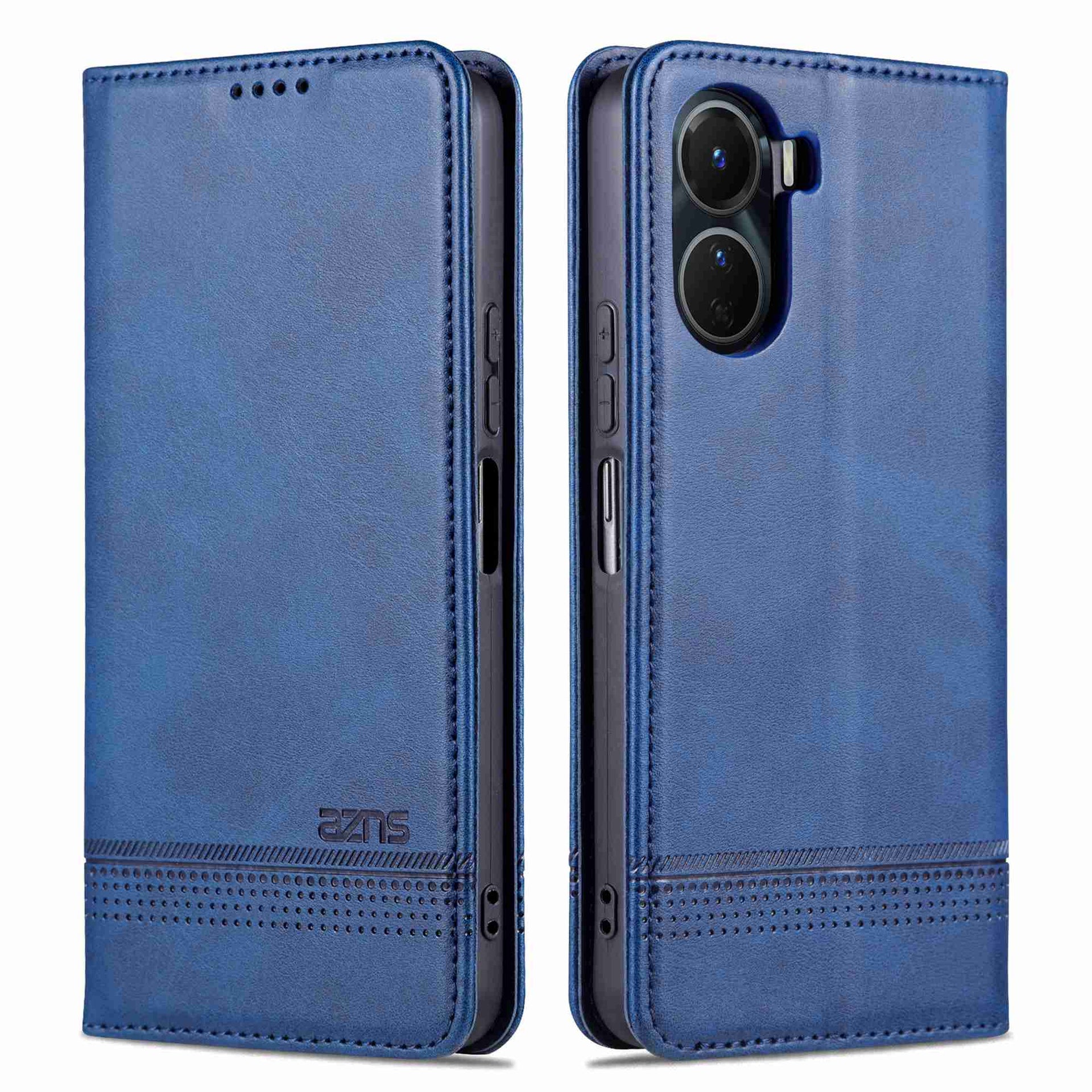 AZNS For vivo Y16 4G Cowhide Texture PU Leather Shockproof Case Magnetic Auto-absorbed Phone Wallet Stand Cover - Blue