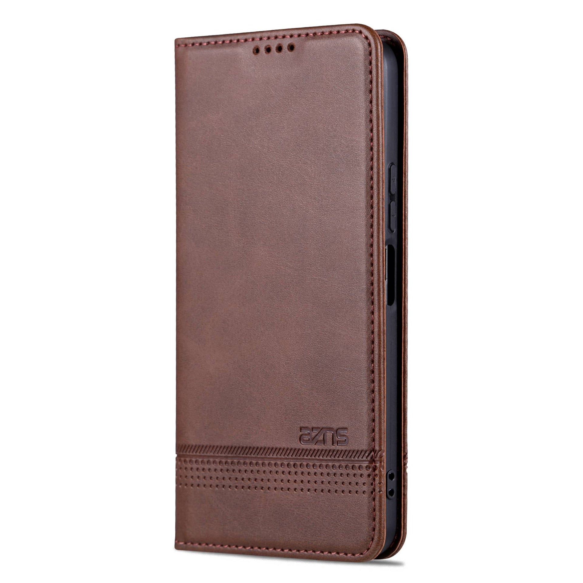 AZNS For vivo Y16 4G Cowhide Texture PU Leather Shockproof Case Magnetic Auto-absorbed Phone Wallet Stand Cover - Coffee