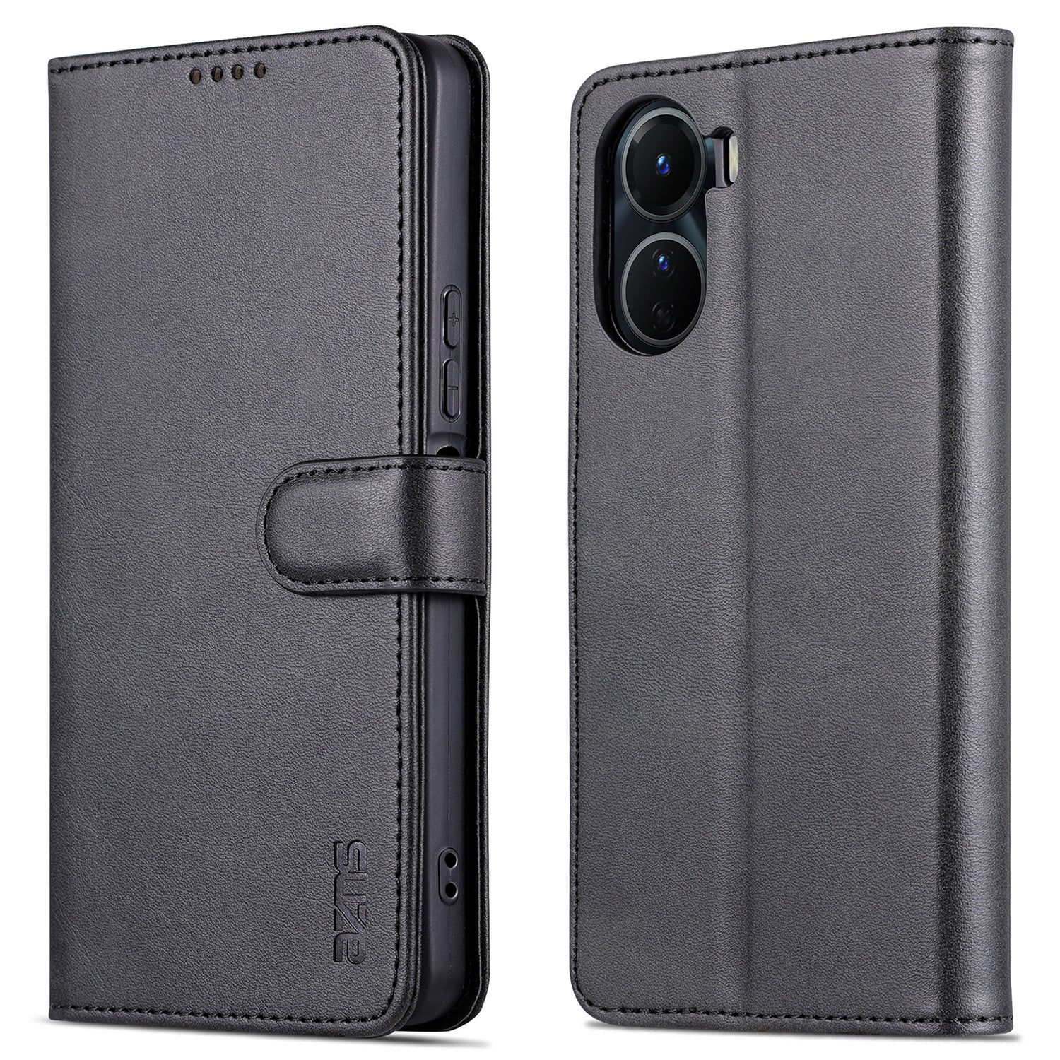 AZNS For vivo Y35 5G / Y56 5G / Y02s 4G / Y16 4G PU Leather Phone Case Support Stand Wallet Cover - Black