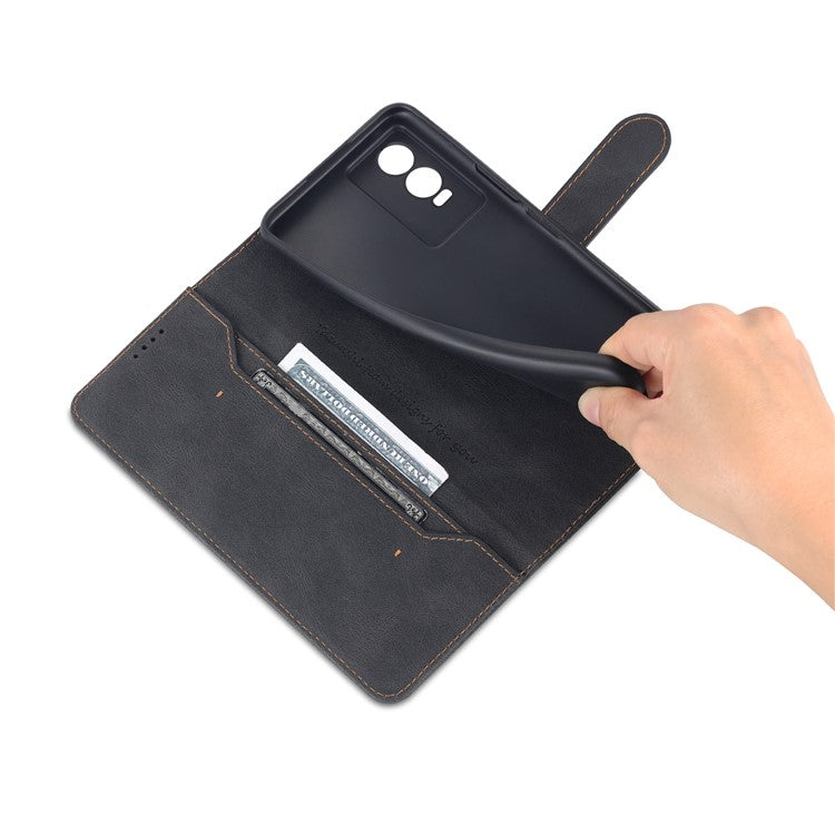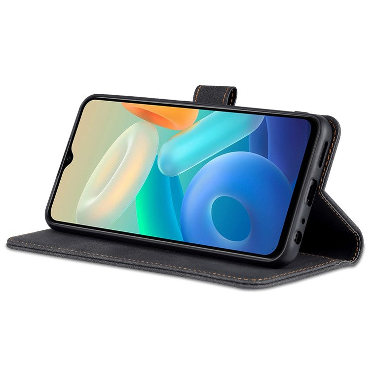 AZNS Phone Case for vivo Y76s/Y74s, PU Leather Wallet Folding Stand Magnetic Scratch-proof Flip Cover - Black
