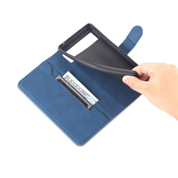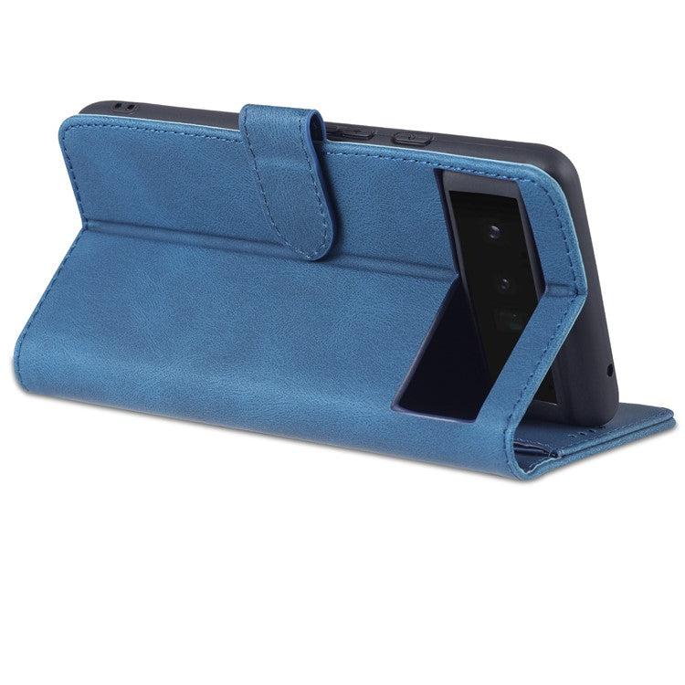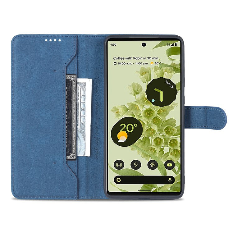 AZNS TPU+PU Leather Wallet Stand Phone Case Well-protected Flip Phone Shell for Google Pixel 6 Pro - Blue