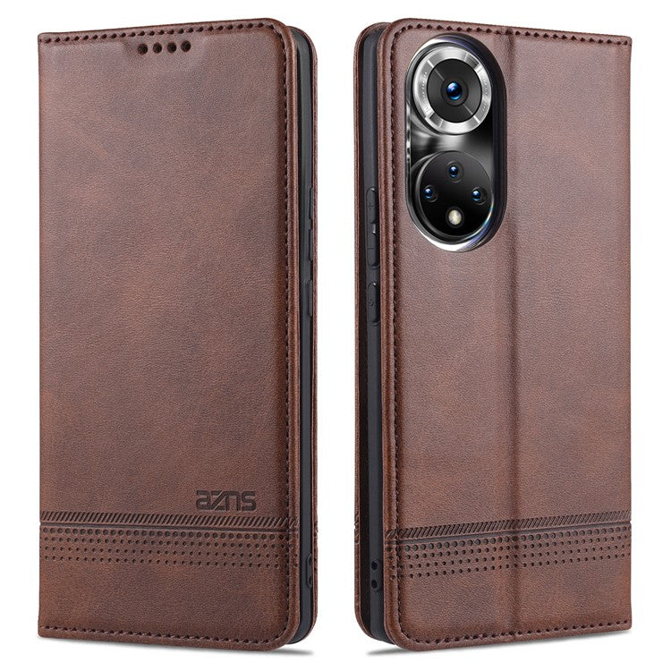 AZNS Wallet Case Flip Magnetic Shockproof Interior Protective Stand Cover for Honor 50 - Coffee