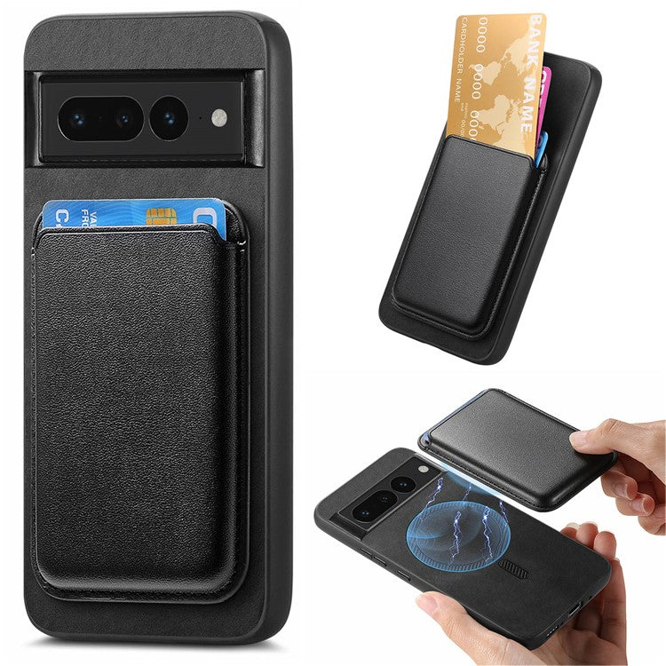 B2 For Google Pixel 7 Pro 5G Magnetic Case Card Holder PU Leather+TPU Phone Cover - Black
