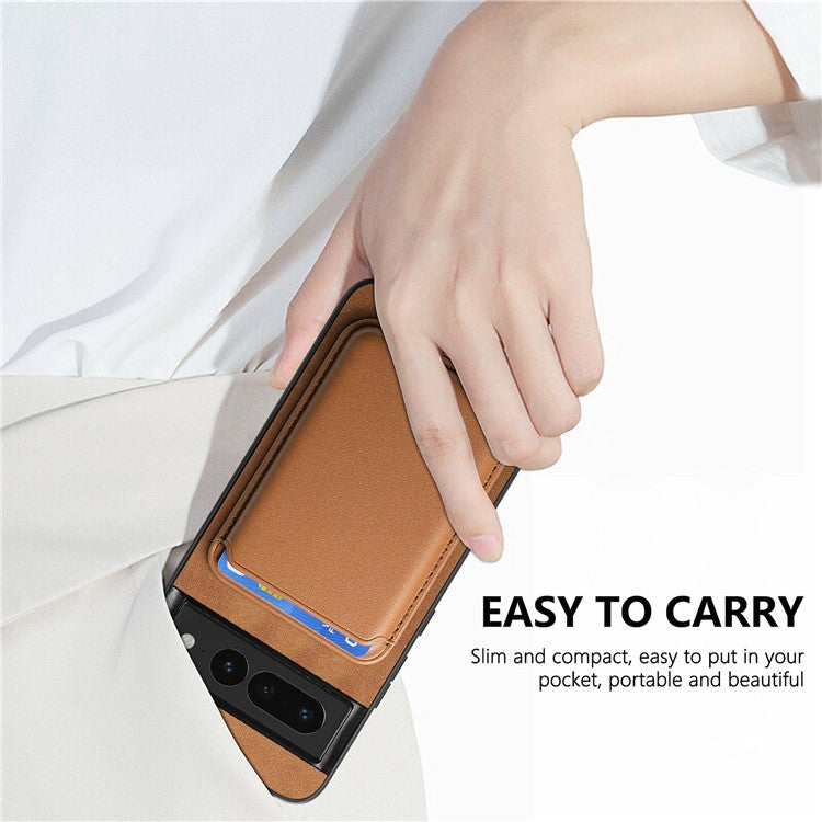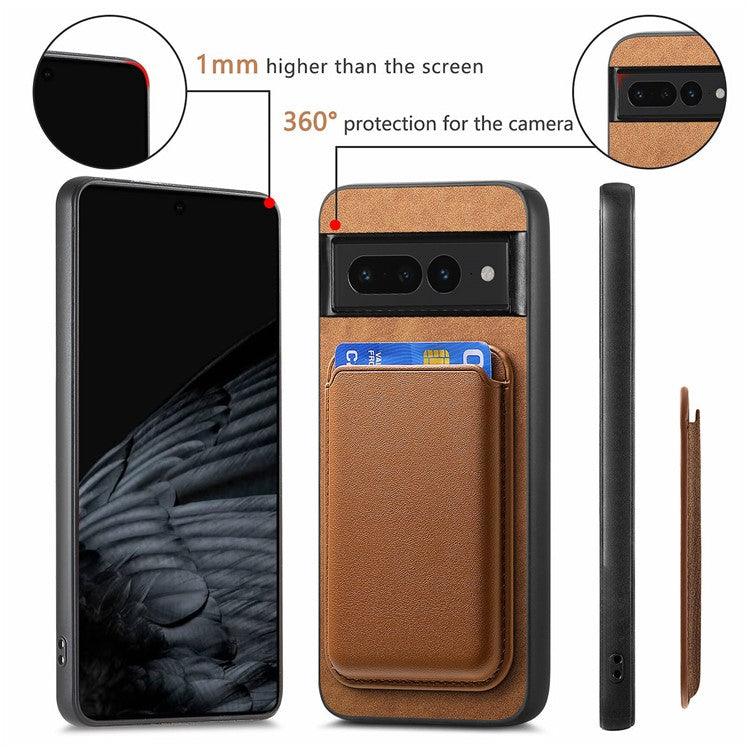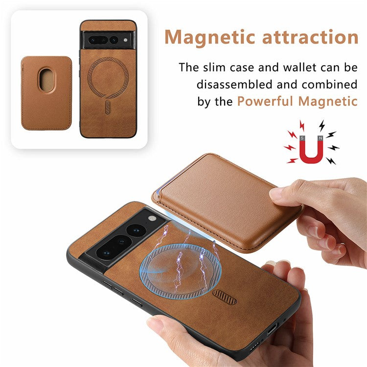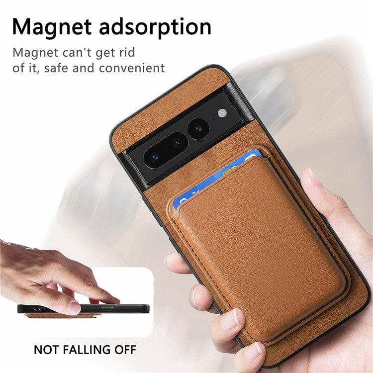 B2 For Google Pixel 7 Pro 5G Magnetic Case Card Holder PU Leather+TPU Phone Cover - Brown