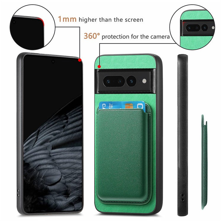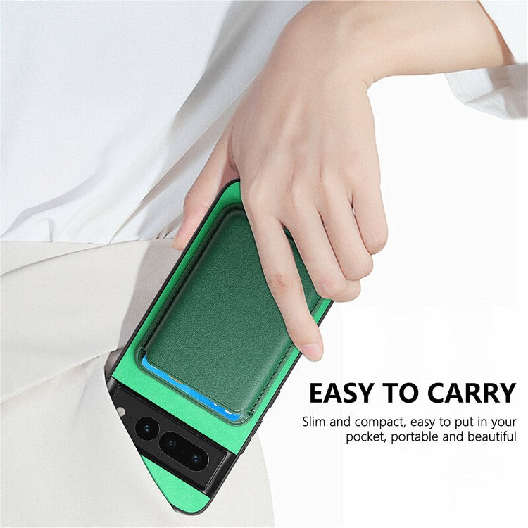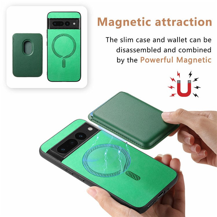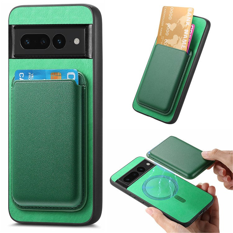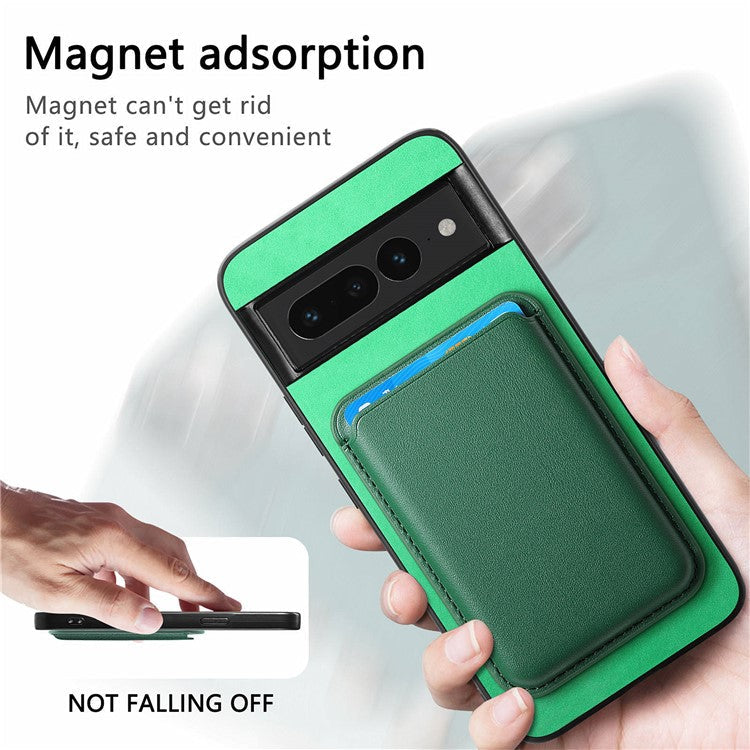 B2 For Google Pixel 7 Pro 5G Magnetic Case Card Holder PU Leather+TPU Phone Cover - Green