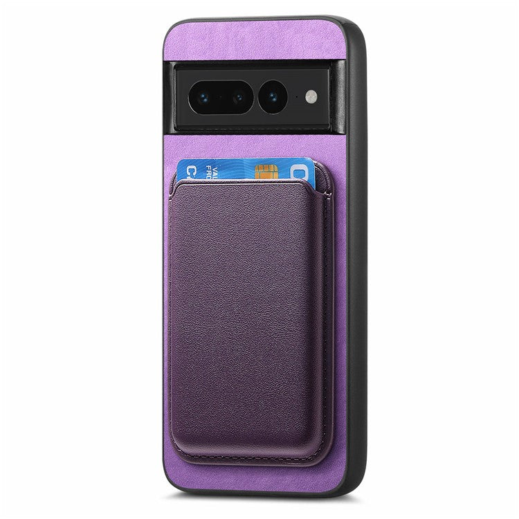 B2 For Google Pixel 7 Pro 5G Magnetic Case Card Holder PU Leather+TPU Phone Cover - Purple