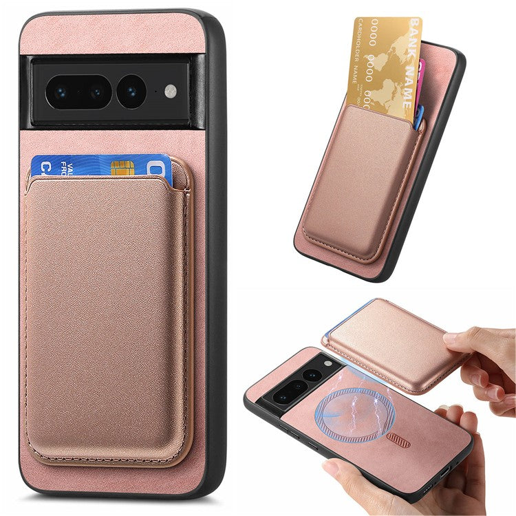 B2 For Google Pixel 7 Pro 5G Magnetic Case Card Holder PU Leather+TPU Phone Cover - Rose Gold