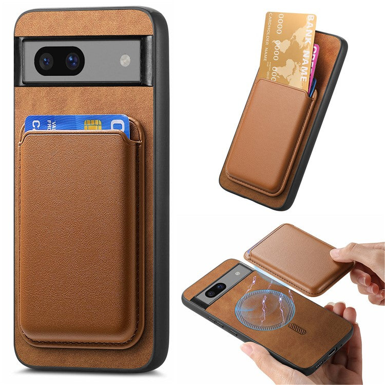 B2 For Google Pixel 7a Magnetic Case Detachable Card Holder Leather+TPU Phone Cover - Brown