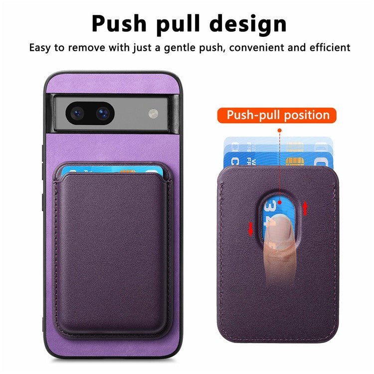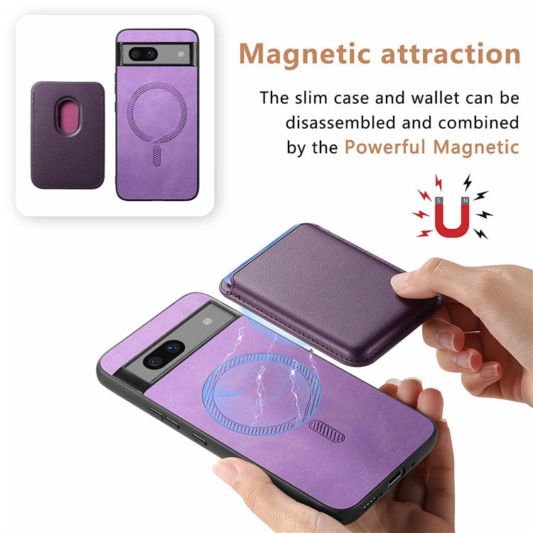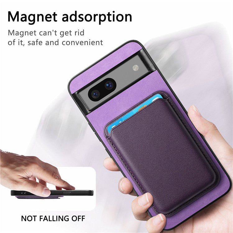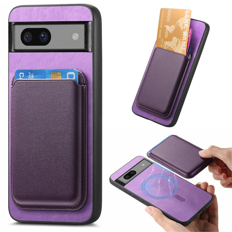 B2 For Google Pixel 7a Magnetic Case Detachable Card Holder Leather+TPU Phone Cover - Purple