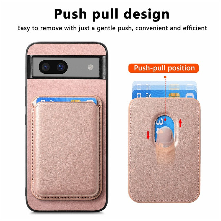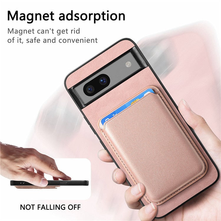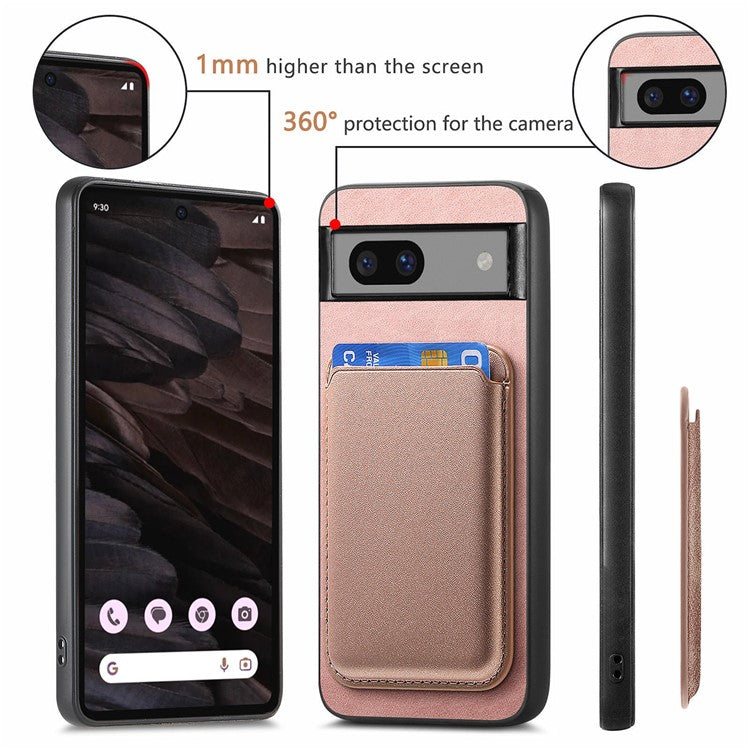 B2 For Google Pixel 7a Magnetic Case Detachable Card Holder Leather+TPU Phone Cover - Rose Gold