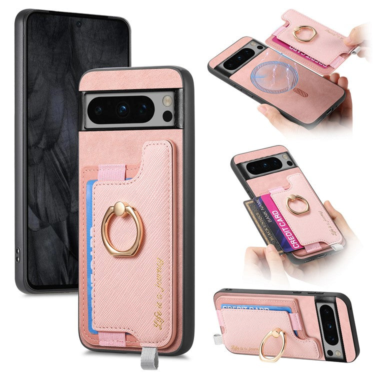 B5 For Google Pixel 8 Pro Case 2-in-1 Magnetic Detachable Card Holder Leather+TPU Phone Cover - Pink