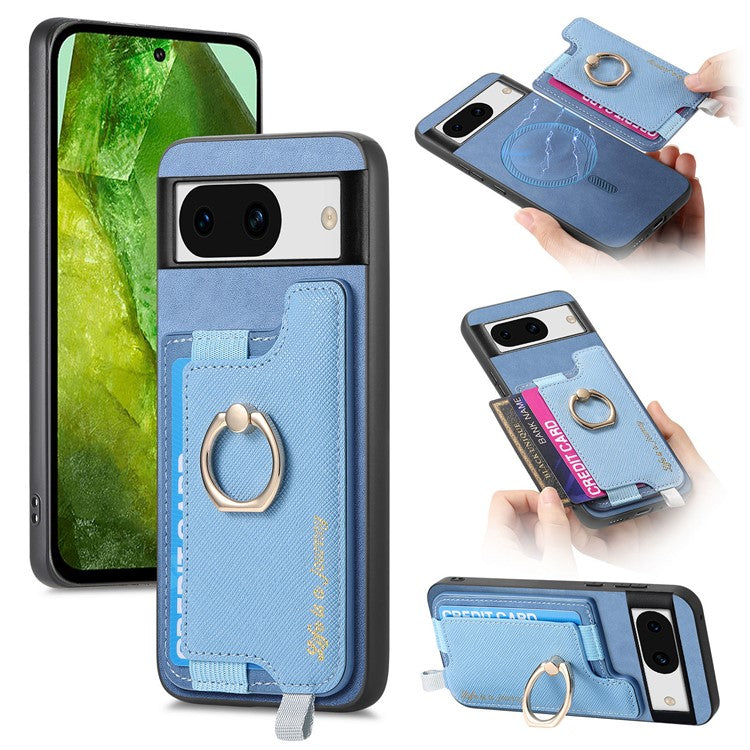 B5 For Google Pixel 8a Case 2-in-1 Magnetic Detachable Card Holder Leather+TPU Phone Cover - Blue