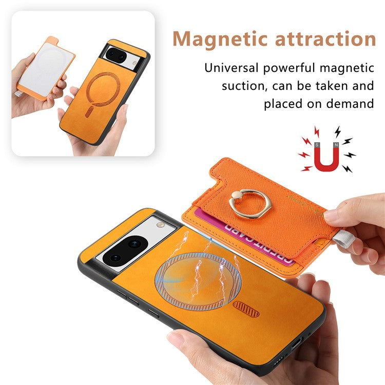 B5 For Google Pixel 8a Case 2-in-1 Magnetic Detachable Card Holder Leather+TPU Phone Cover - Yellow