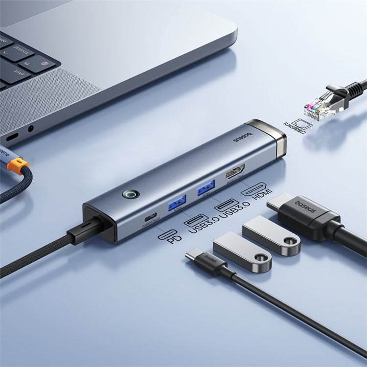 BASEUS BS-OH165 UltraJoy Series 5-Port HUB AIR 5-In-1 Multi-Port Adapter to HD 4K, 2xUSB 3.0, PD, RJ45